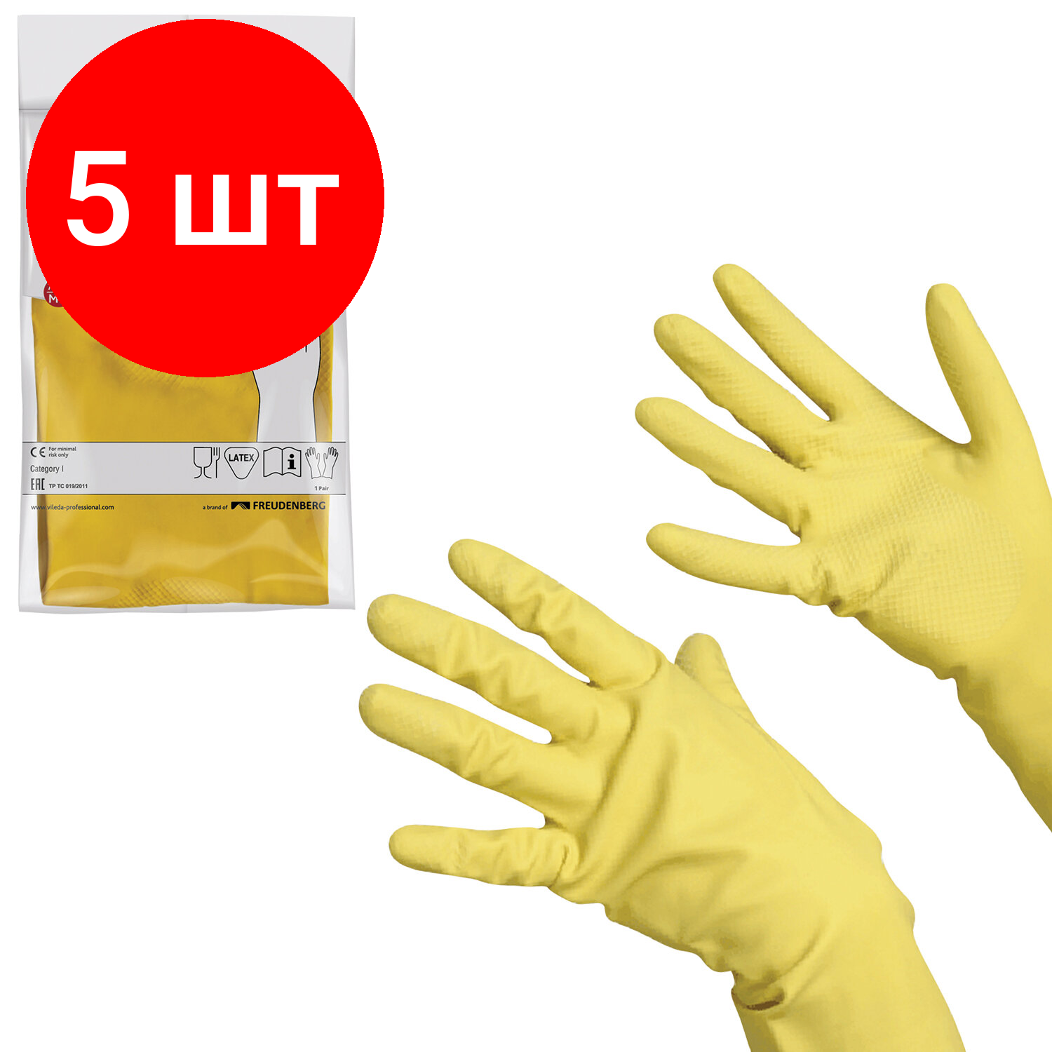 Латексные перчатки Контракт / Contract Vileda Professional, желтый, размер L, 5 пар