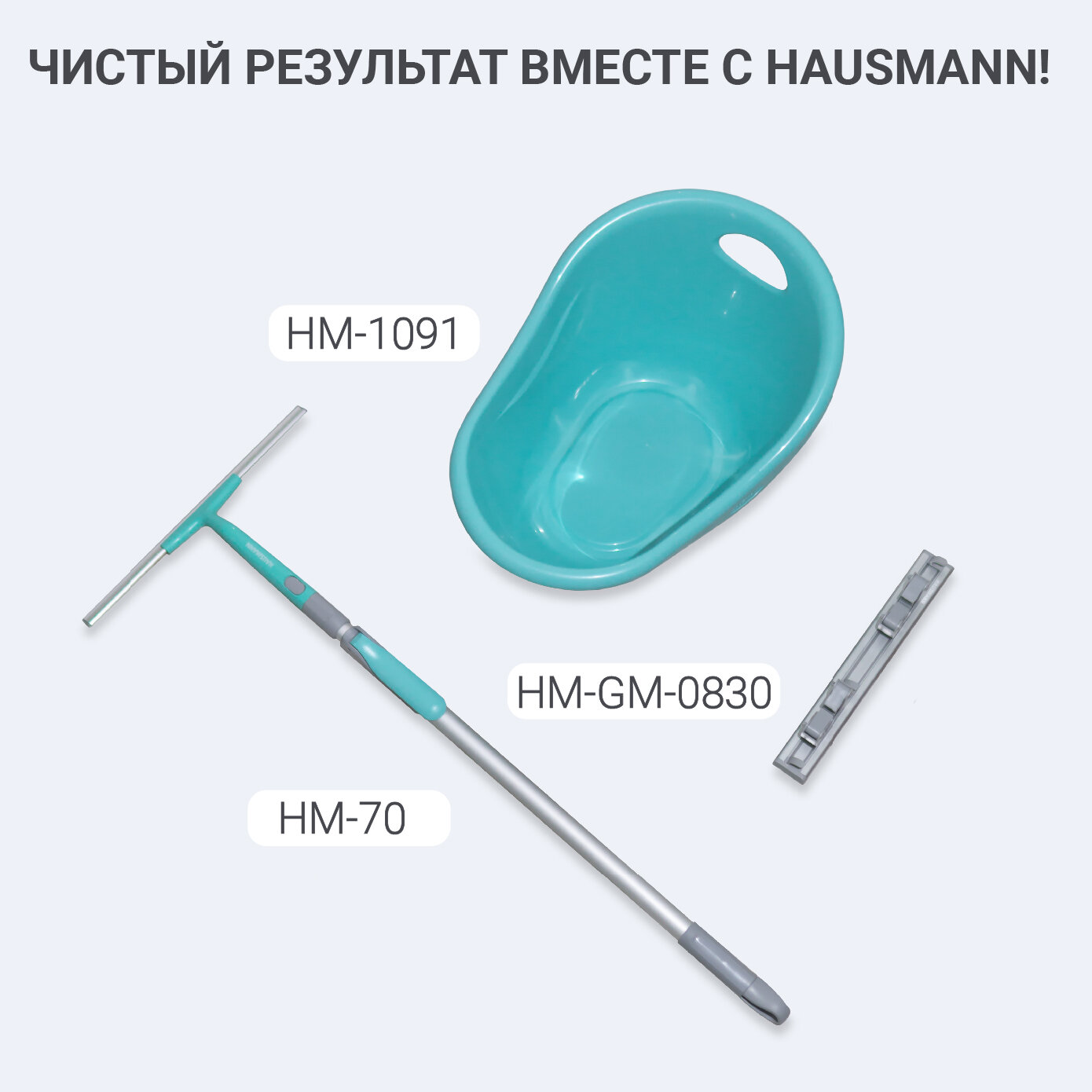 Щетка для мытья окон Hausmann HM-70 с прямой телескопической ручкой (водосгон+стеклочиститель)