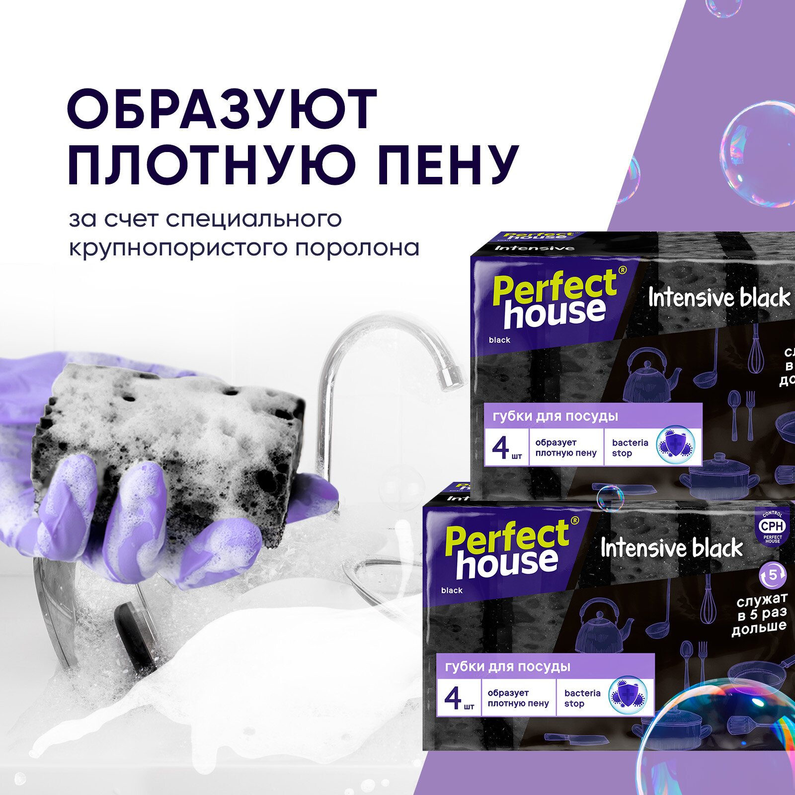 Купить Губки для мытья посуды Perfect House Intensive black черные, хозяйственные для уборки на кухне, 8 шт