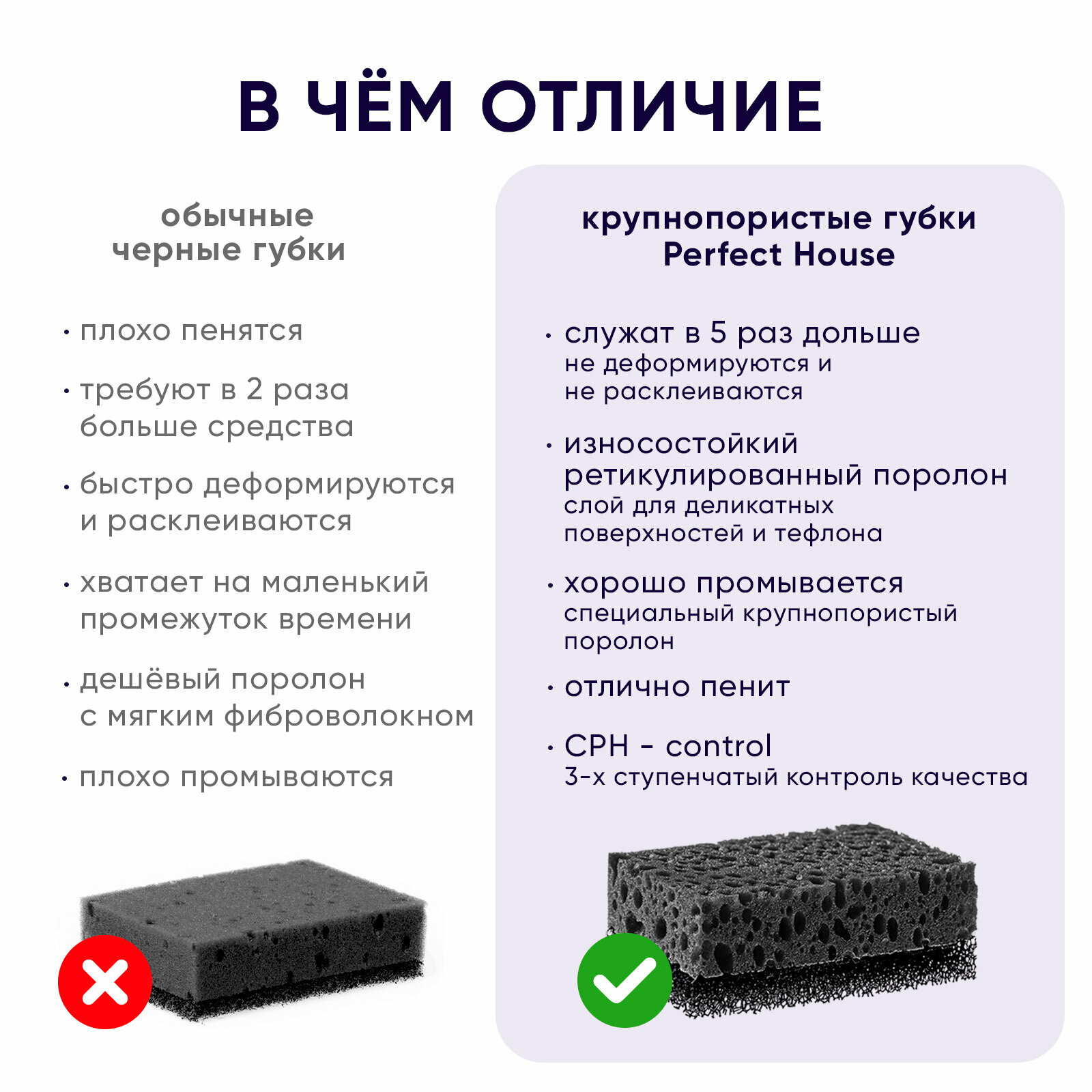 СохранитьГубки для мытья посуды Perfect House Intensive black черные, хозяйственные для уборки на кухне, 8 шт интересное: