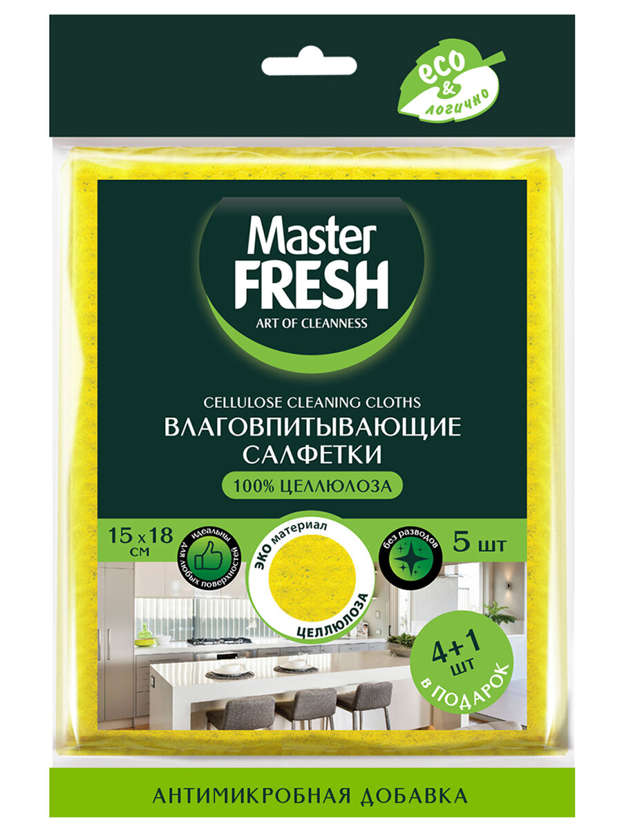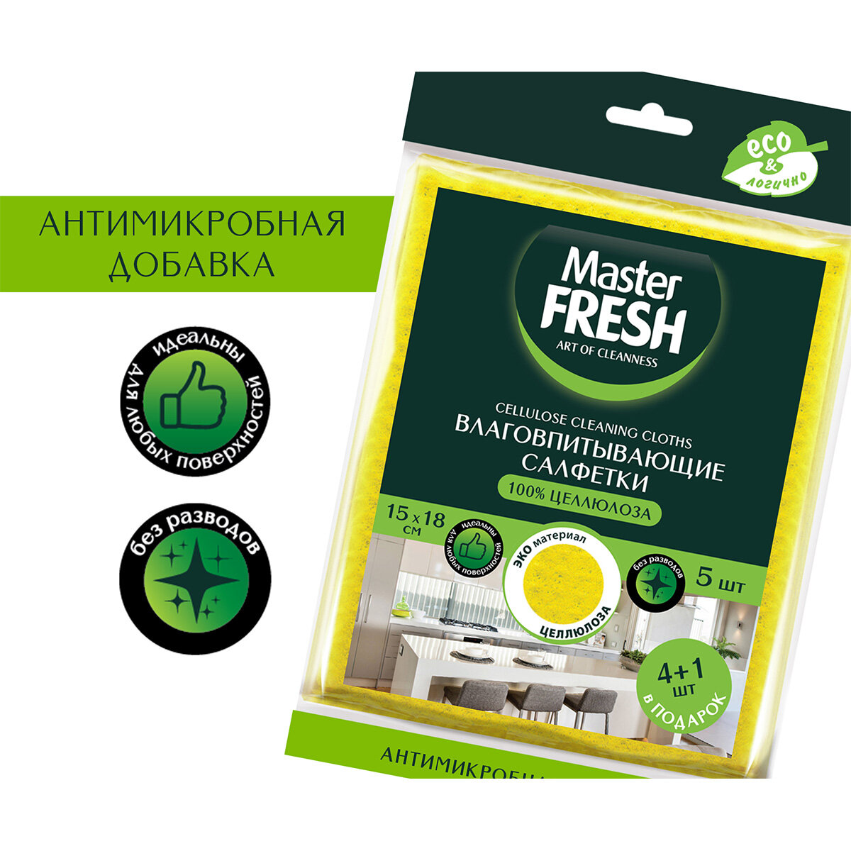 Купить Промо Master FRESH ЭКО салфетки целлюлозные + Антимикробная добавка 15*18см, 4+1 шт в подарок