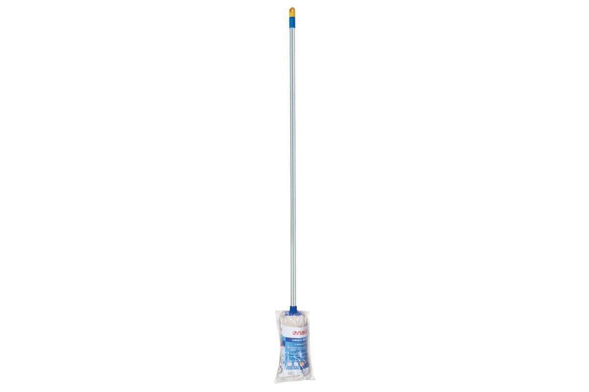 Швабра Лайма с веревочной насадкой, черенок 120 см, еврорезьба, 165 г (хлопок), ворс 26 см