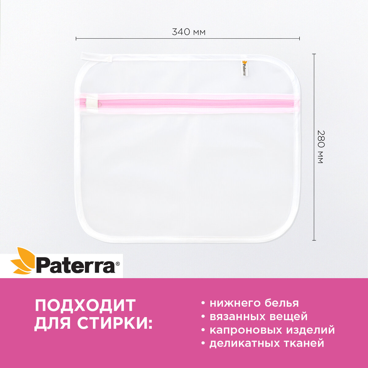 Мешок для бережной стирки PATERRA 34x28 см, с молнией 402-891