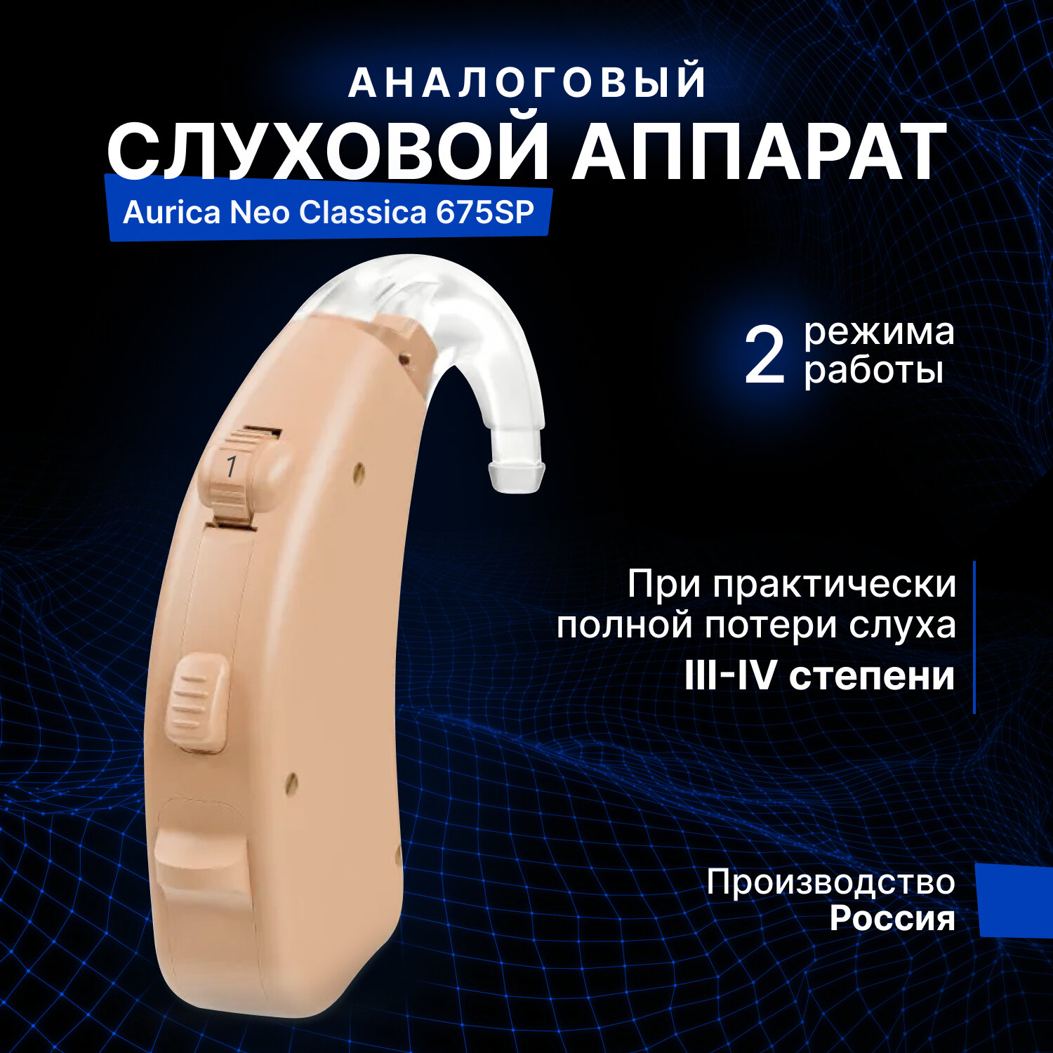 Купить Аналоговый слуховой аппарат Aurica Neo Classica 675SP для III-IV степени потери слуха