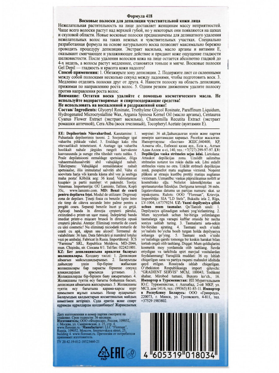 Полоски восковые для депиляции лица, чувствительных участков интересное: