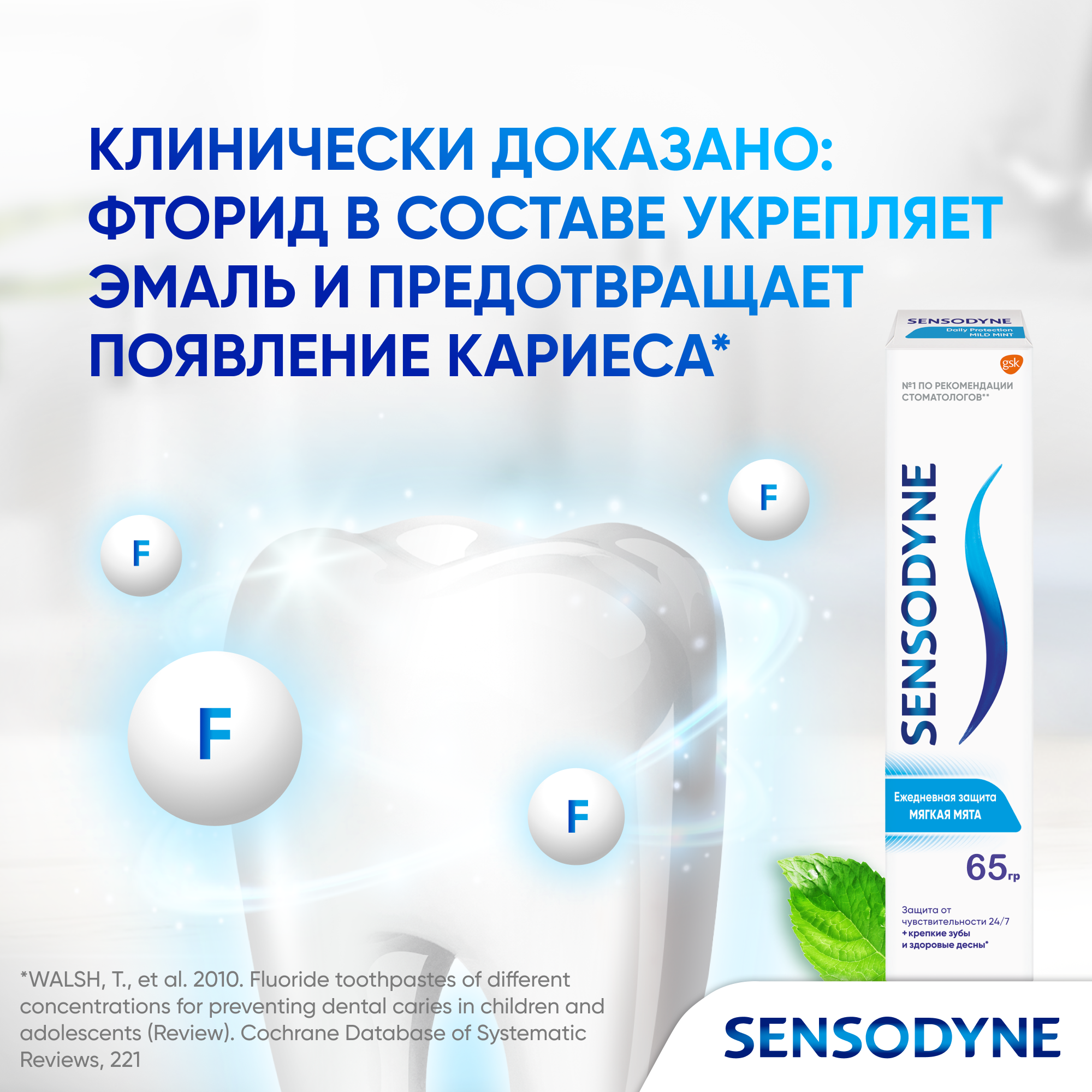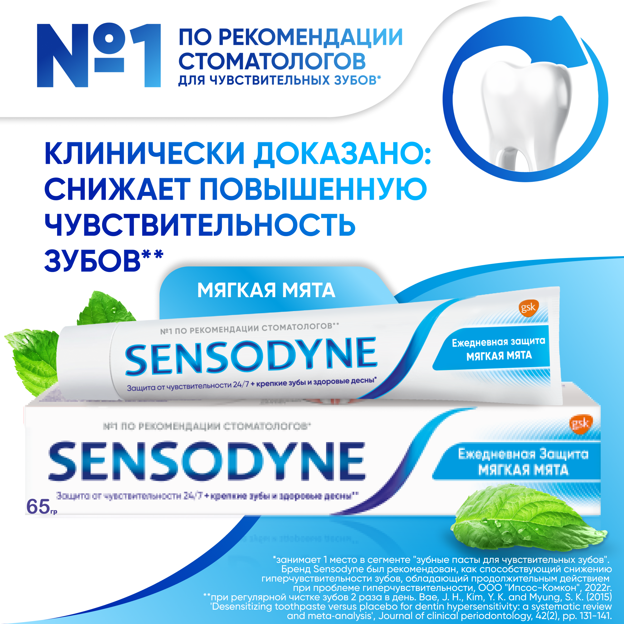 Зубная паста Sensodyne Ежедневная Защита Мягкая мята с фтором, для снижения чувствительности зубов и защиты от кариеса, 65 г интересное: