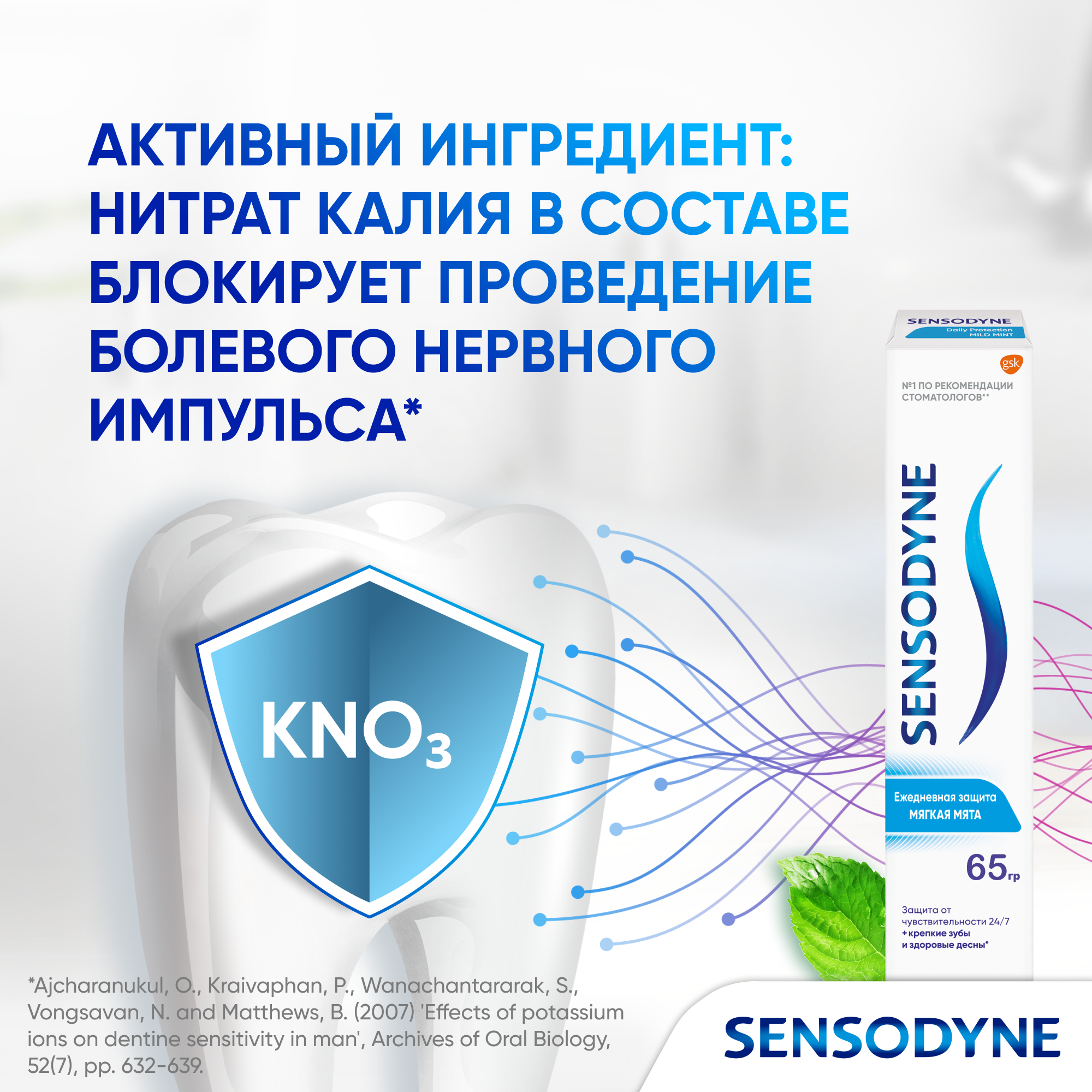 Купить Зубная паста Sensodyne Ежедневная Защита Мягкая мята с фтором, для снижения чувствительности зубов и защиты от кариеса, 65 г