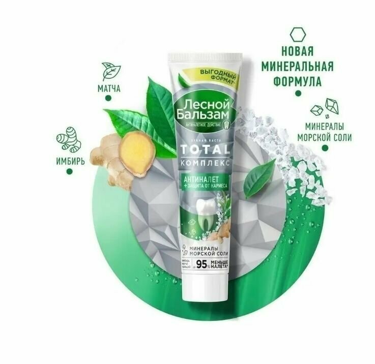 Зубная паста лесной бальзам Total Комплекс с морской солью, экстрактом имбиря и чаем матча, 150г
