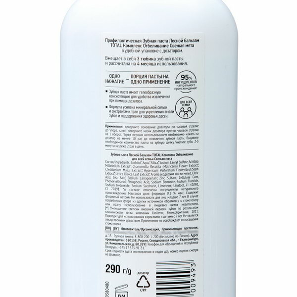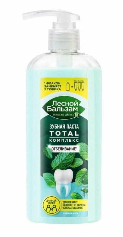 Зубная паста Лесной бальзам TOTAL Комплекс Отбеливание Свежая мята, 290 мл, 290 г интересное: