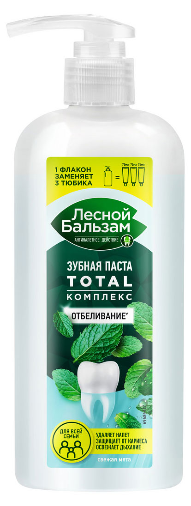 Зубная паста отбеливающая с дозатором Лесной Бальзам Свежая Мята Total Комплекс Отбеливание для всей семьи 290 мл