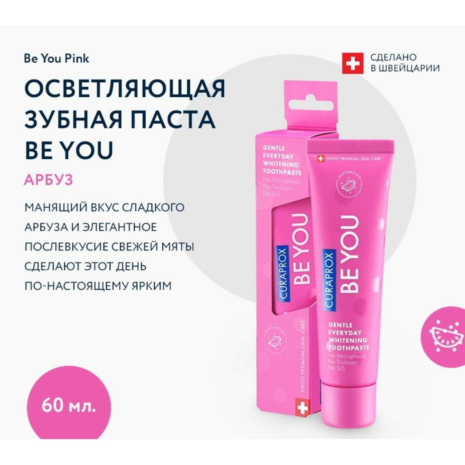 Отбеливающая зубная паста BE YOU со вкусом арбуза 60 мл Be You Pink
