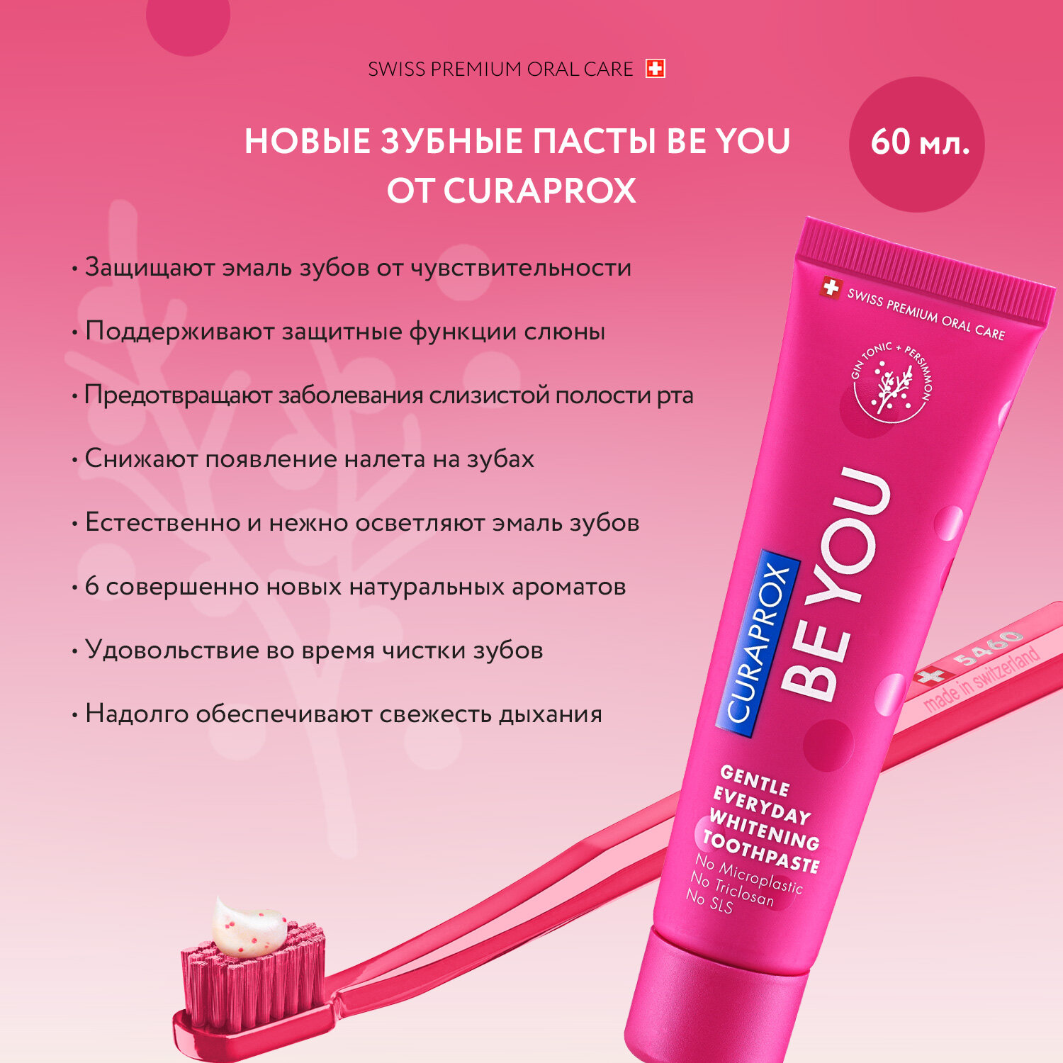 Зубная паста Curaprox BE YOU "Любитель конфет", розовая, 60 мл