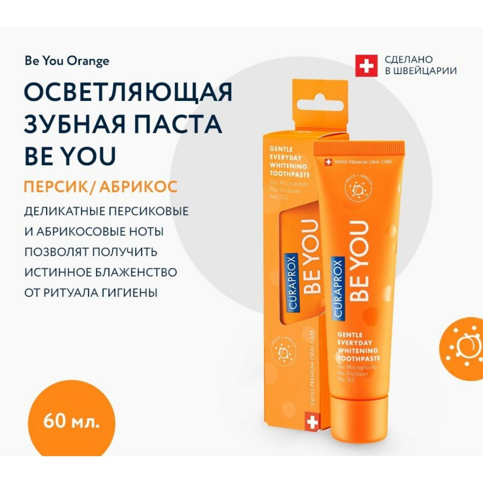 Отбеливающая зубная паста BE YOU со вкусом персика И абрикоса 60 мл Be You Orange