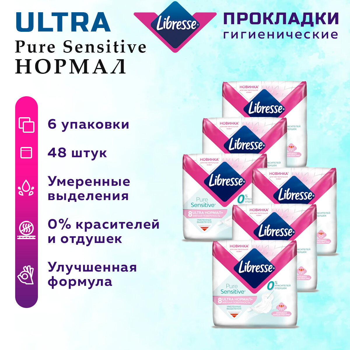 Купить Libresse Прокладки гигиенические Ultra Sensitive Pure Нормал, 8 шт, 6 уп /