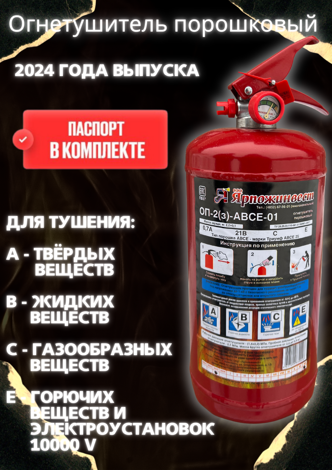 Огнетушитель порошковый ОП-2 АВСЕ Ярпожинвест