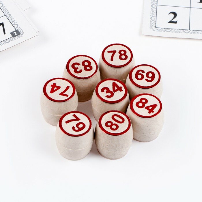 | Дополнительная информация | Материал бочонков: древопласт (древесно-полимерный композит/ДПК). Это материал, в котором сочетаются лучшие свойства древесины и пластика. Размер бочонка: высота 2.3 см, диаметр 2 см. Размер карточки: 7.5 х 21 см. |
