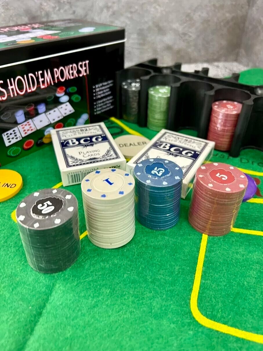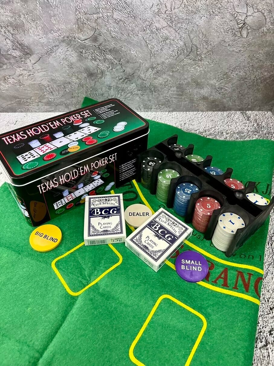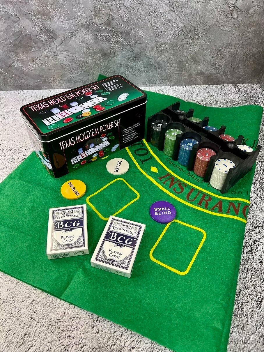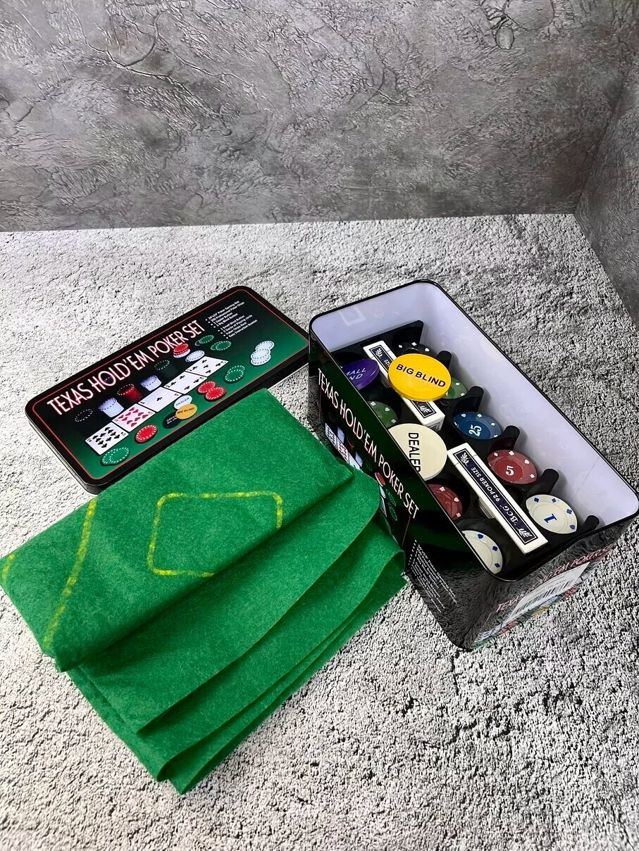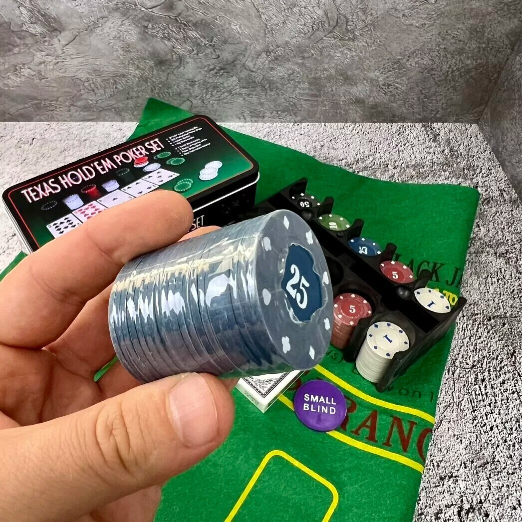 Набор для покера / Покерный набор Texas на 200 фишек с сукном для покера в подарок