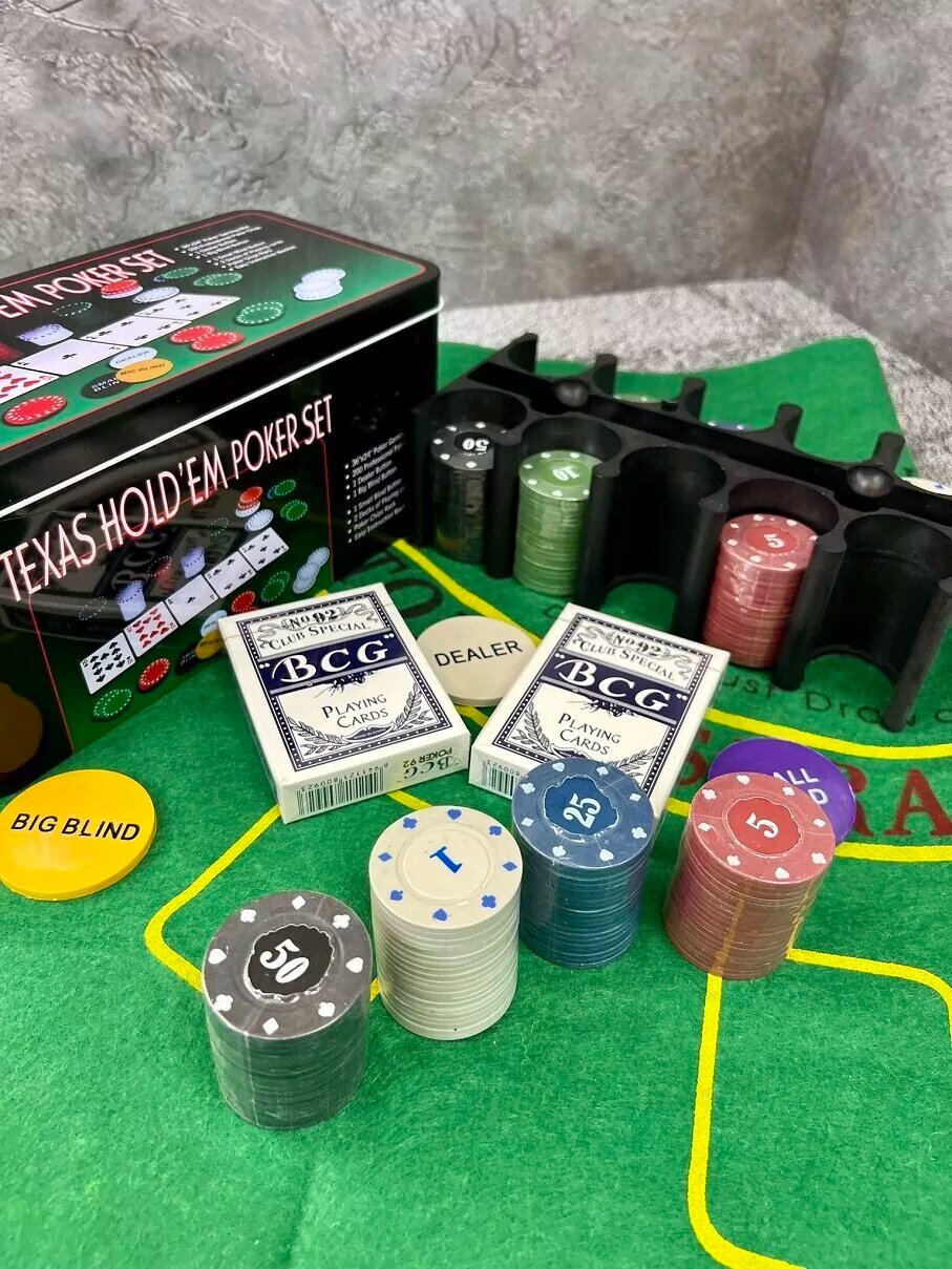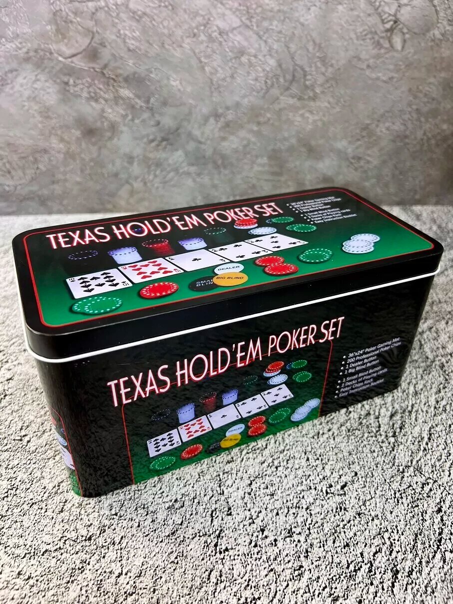 Гранд Набор для игры в Покер в жестяной коробке, 200 фишек интересное: