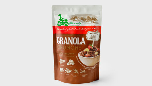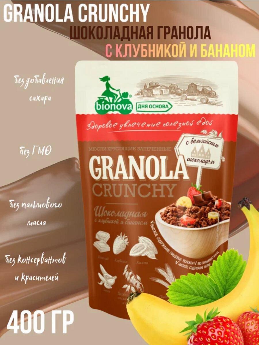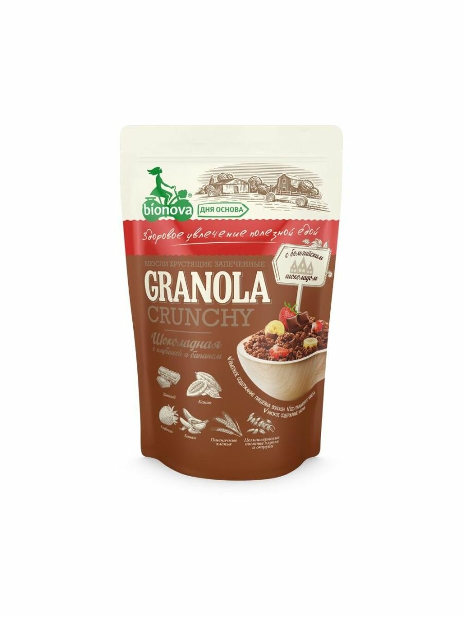 BIONOVA Мюсли Гранола Crunchy Шоколадные с Клубникой и Бананом 400гр