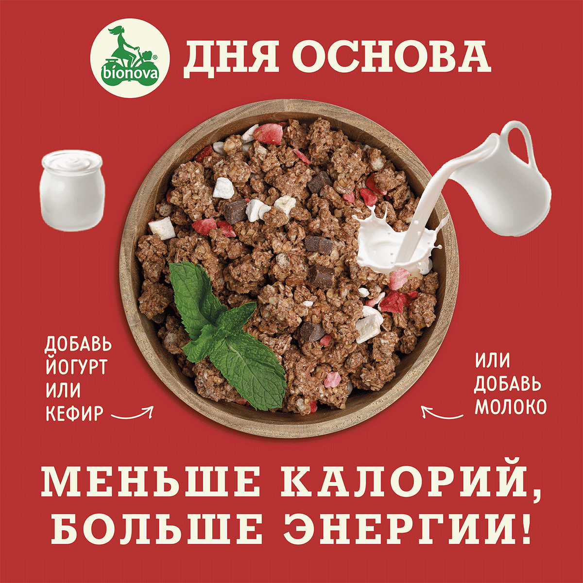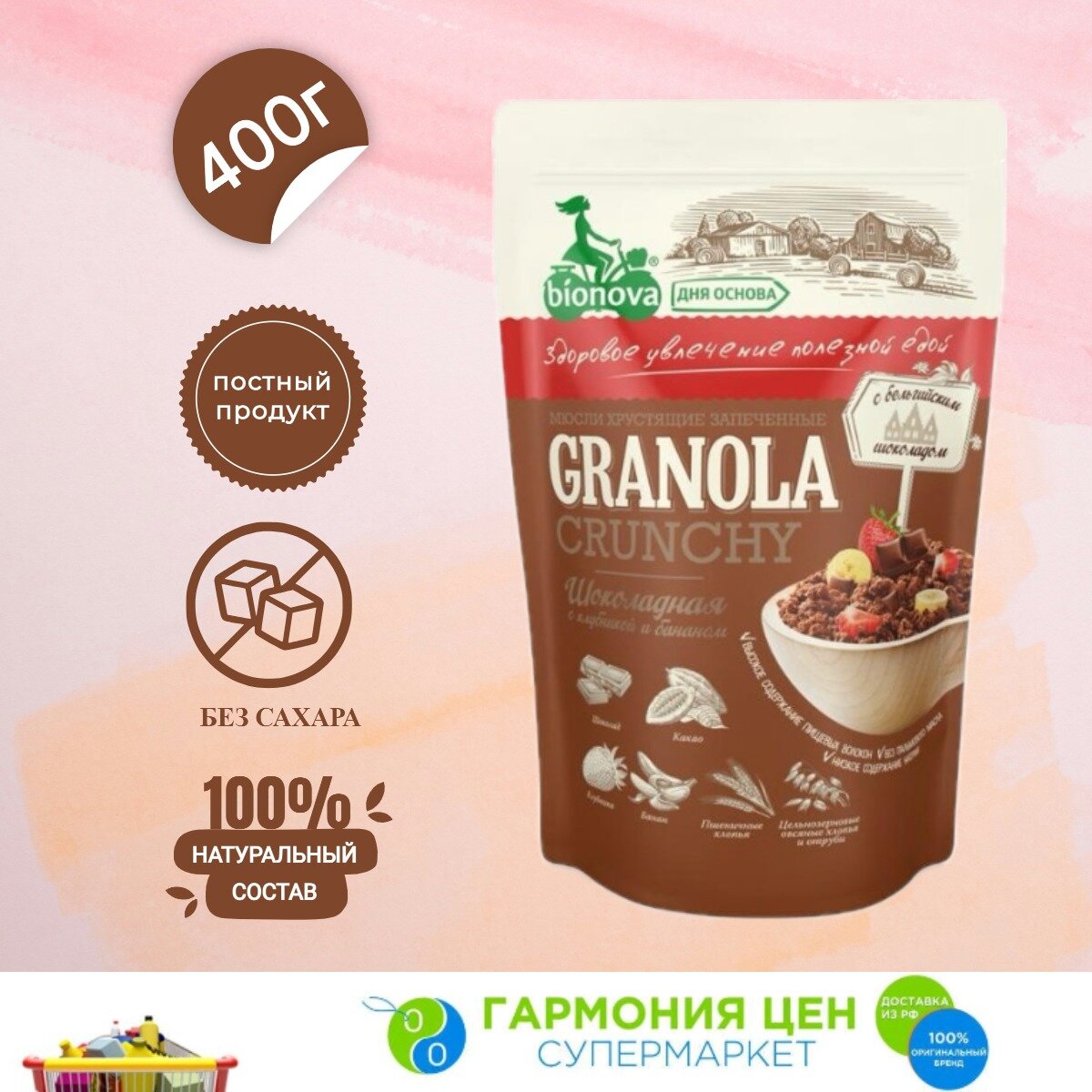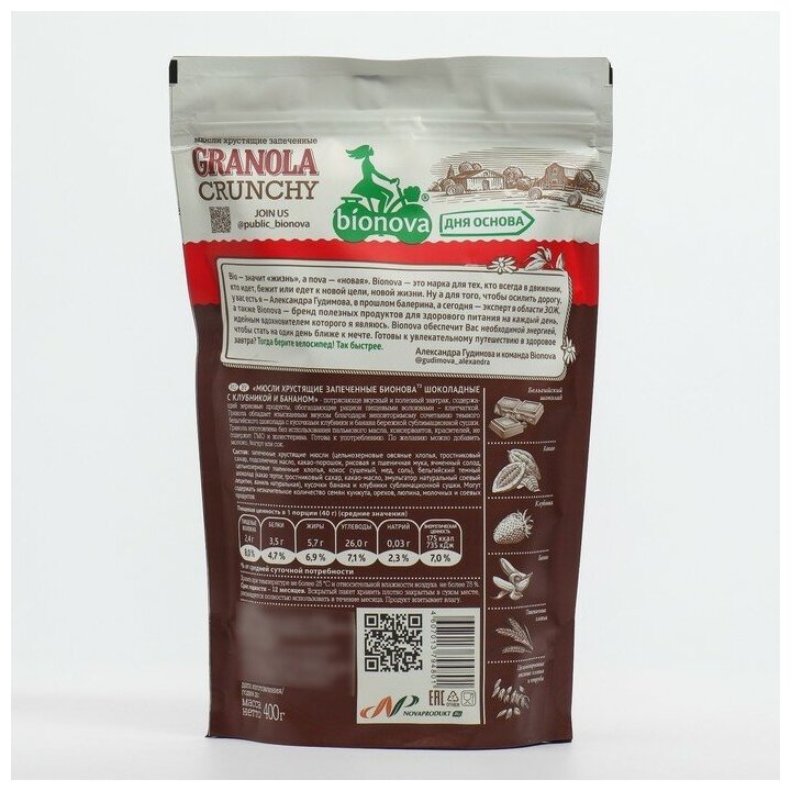 Bionova Гранола "Шоколадная с клубникой и бананом", 400 г интересное: