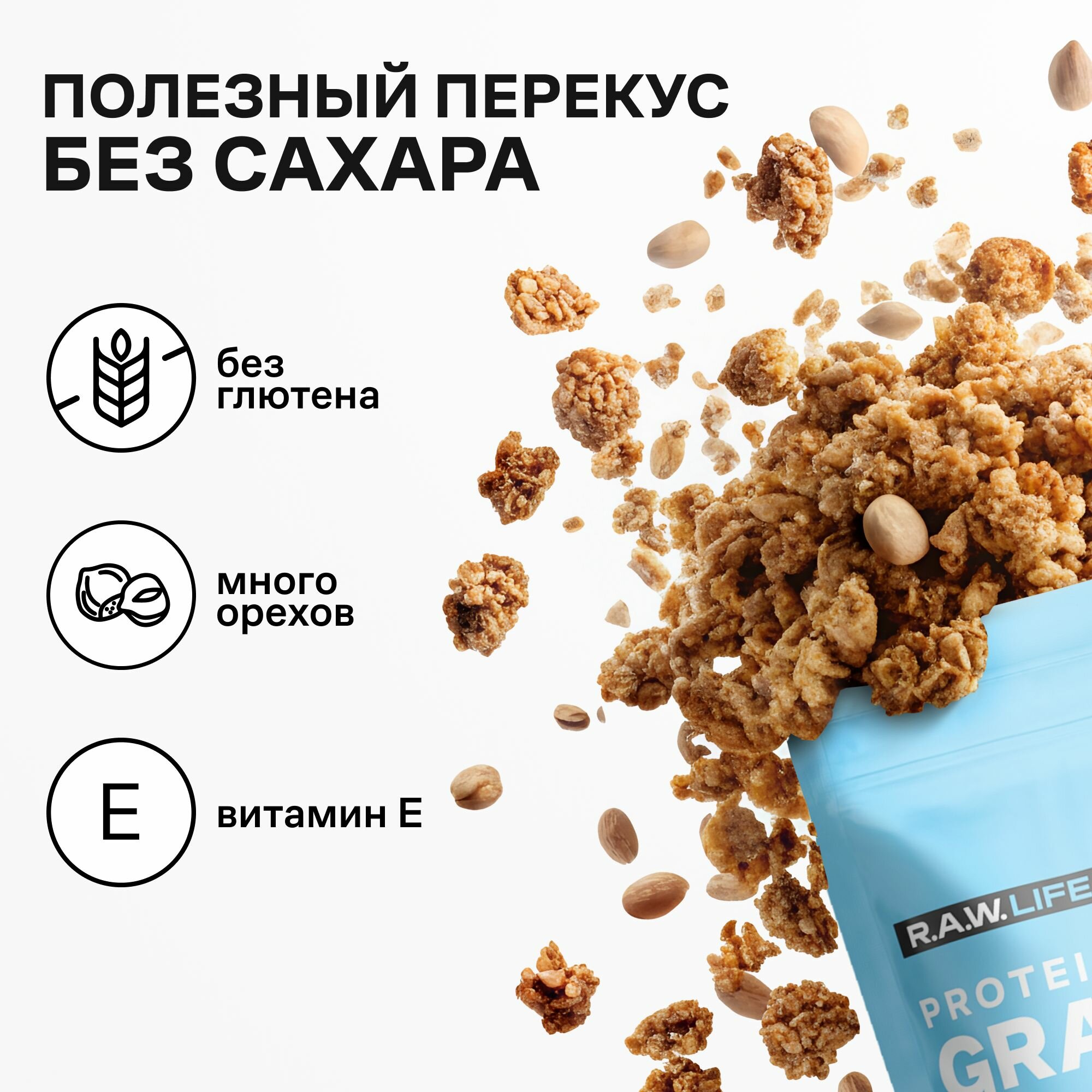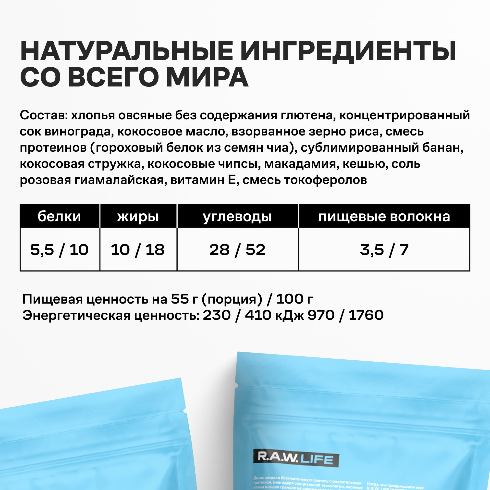 Гранола протеиновая R.A.W. LIFE без сахара, без глютена / Натуральный готовый веганский продукт для здорового питания / Кокос-Банан 220гр интересное: