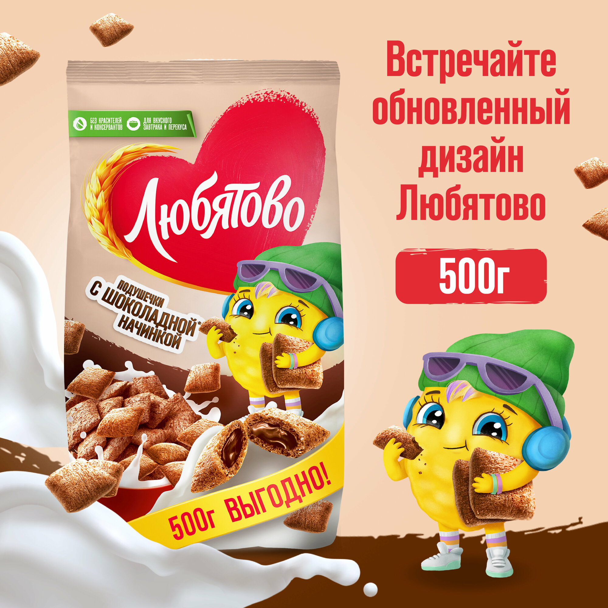 Готовый завтрак Любятово Подушечки с шоколадной начинкой, 500 г интересное: