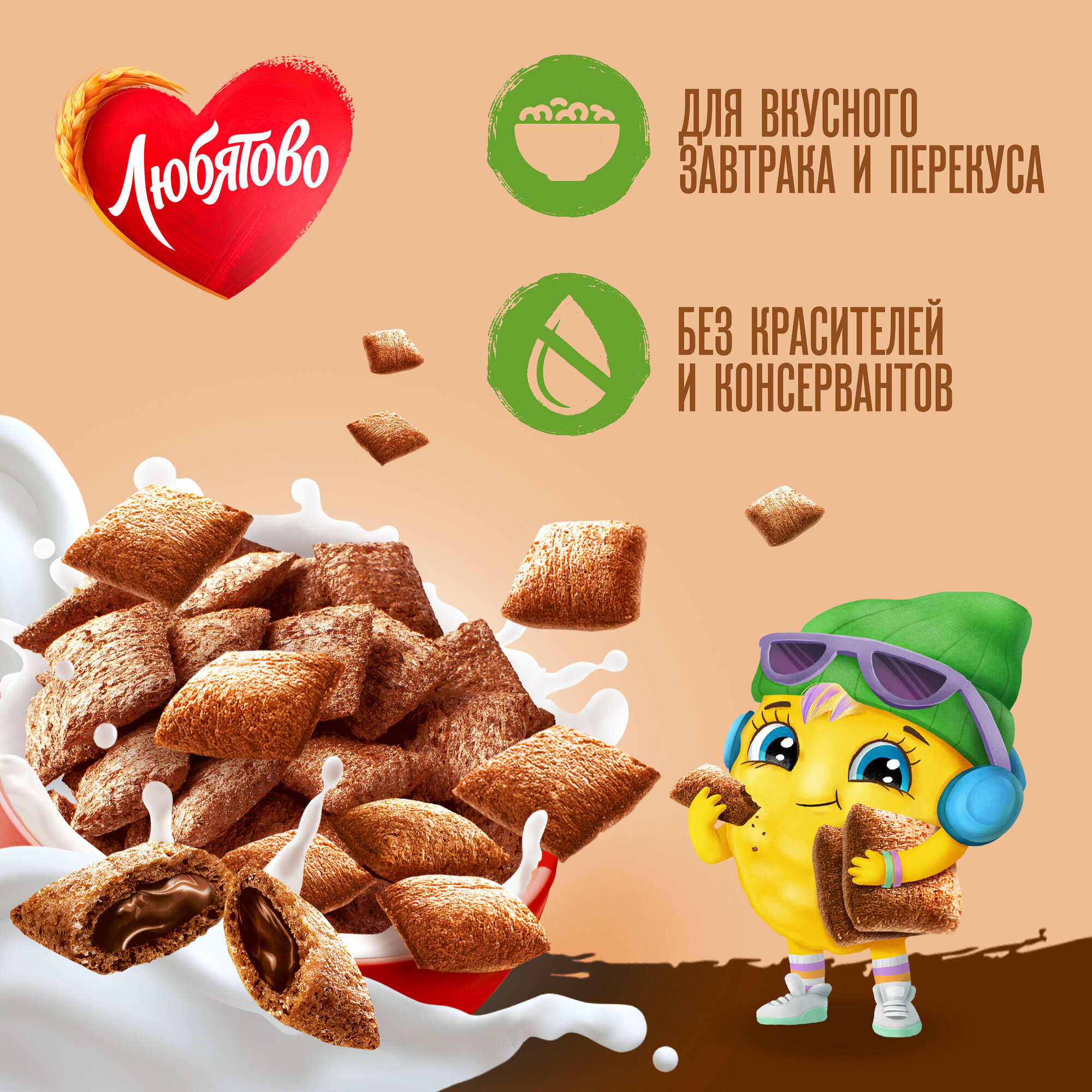 Купить Готовый завтрак Любятово Подушечки с шоколадной начинкой, 500 г
