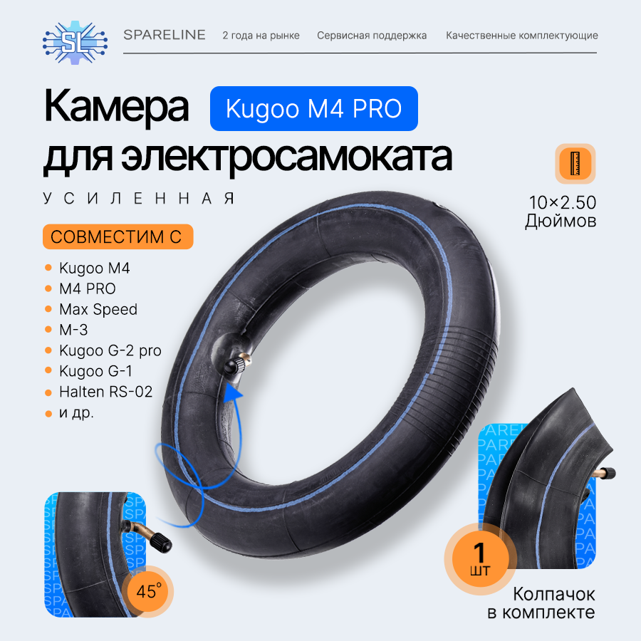 Усиленная камера для электросамокатов Kugoo M4 / M4 Pro 10x2.50, (кривой сосок) интересное: