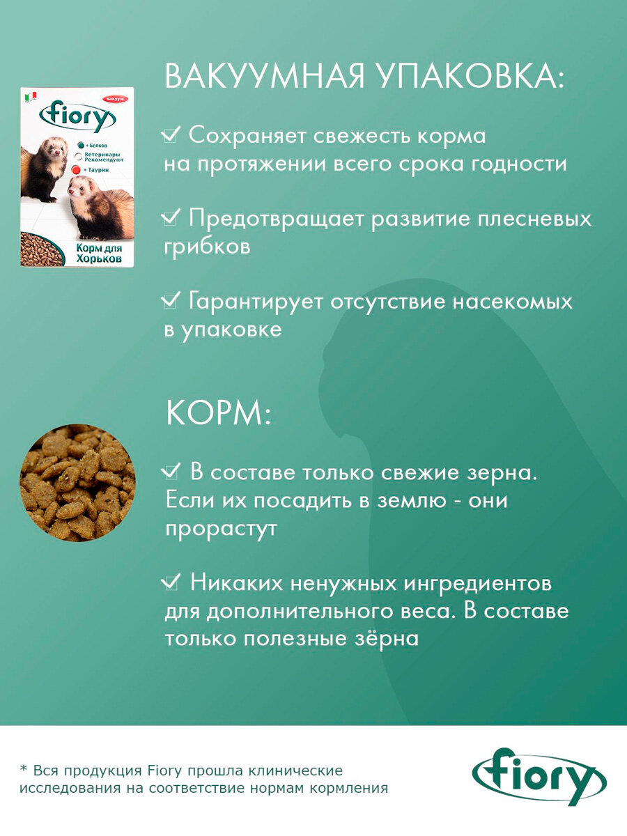 Ниже Вы можете прочитать отзывы на FIORY FARBY — Фиори корм для хорьков (650 гр х 2 шт), ознакомится с подробными характеристиками, посмотреть интересные обзоры и фотографии на FIORY FARBY — Фиори корм для хорьков (650 гр х 2 шт).