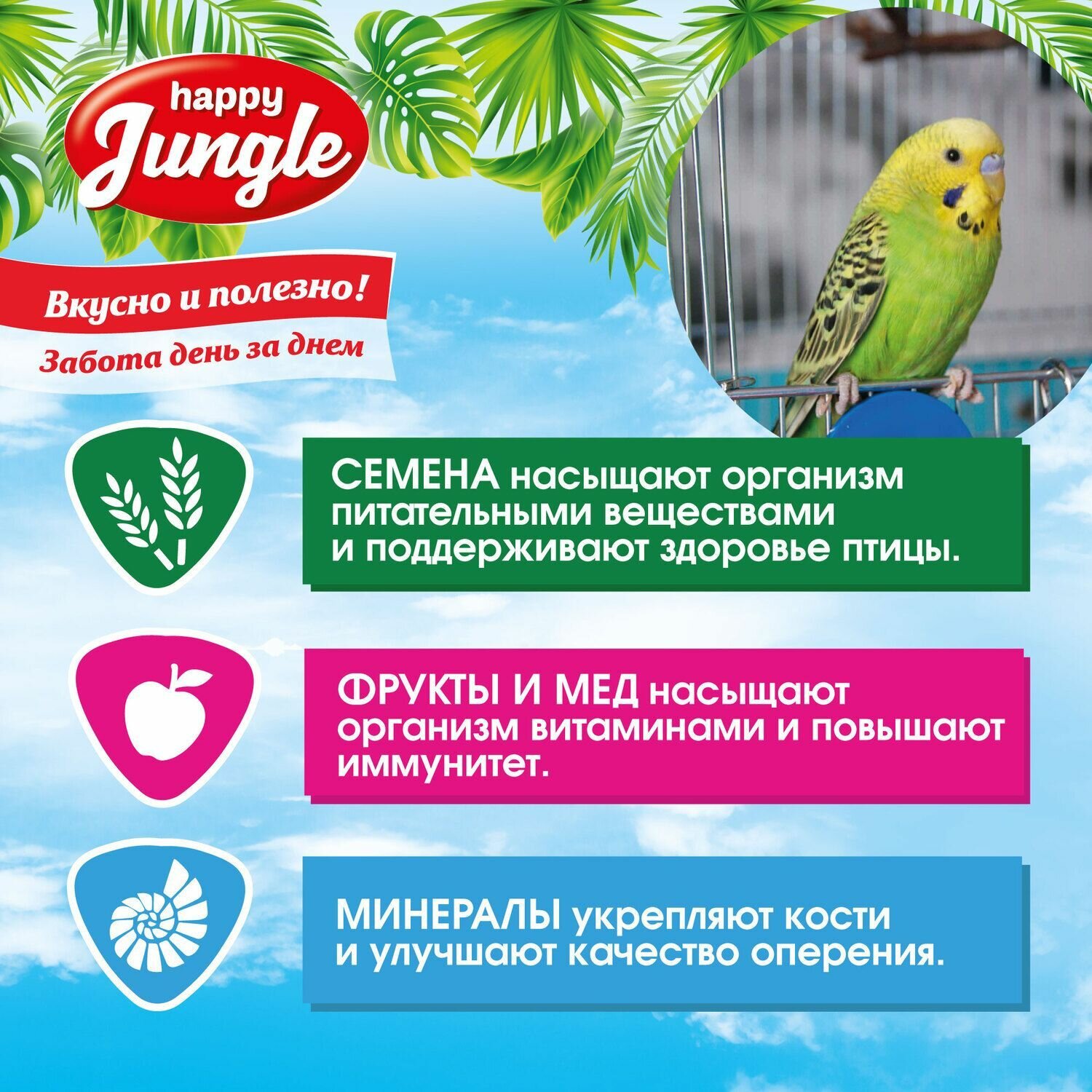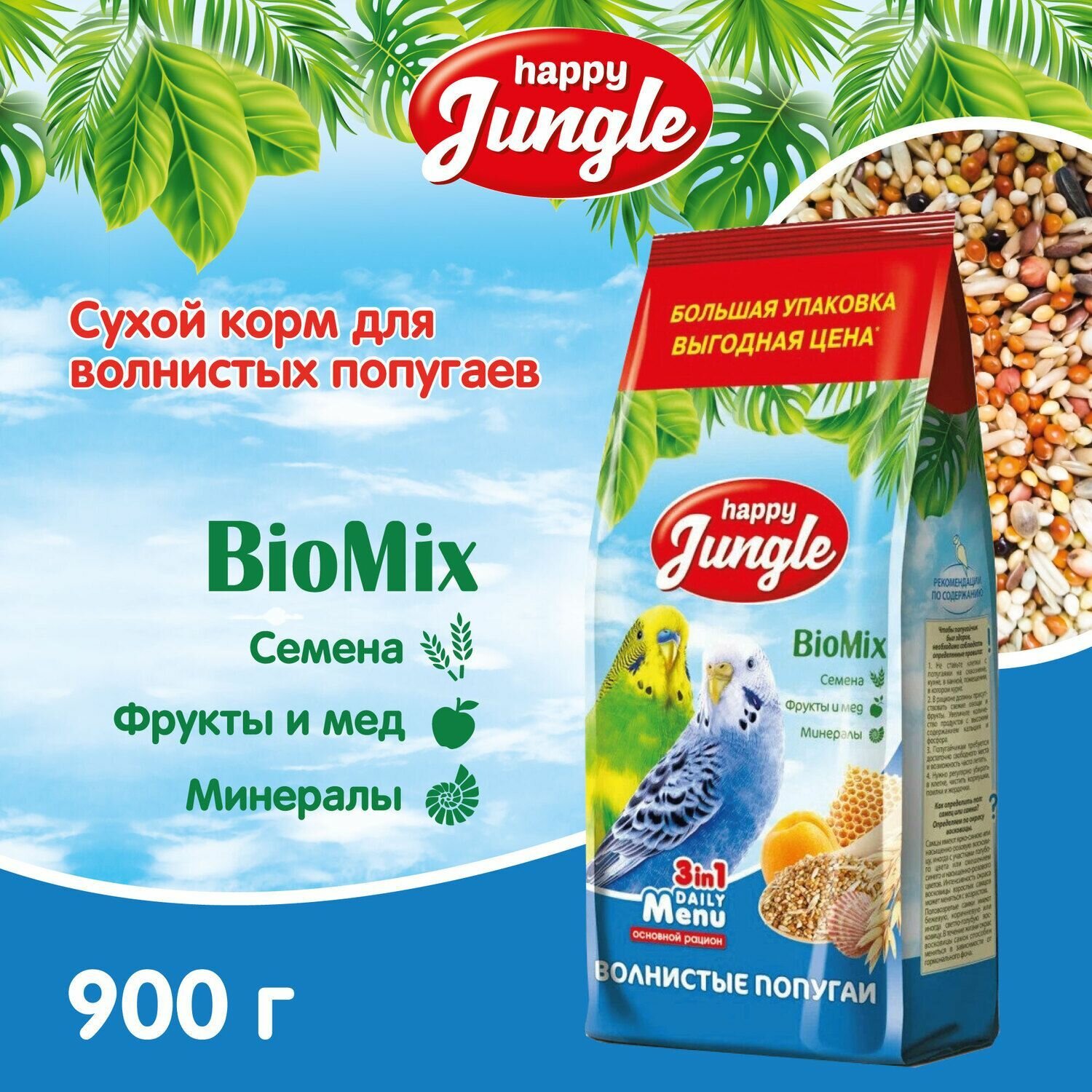Корм для волнистых попугаев сухой Happy Jungle 900 г интересное: