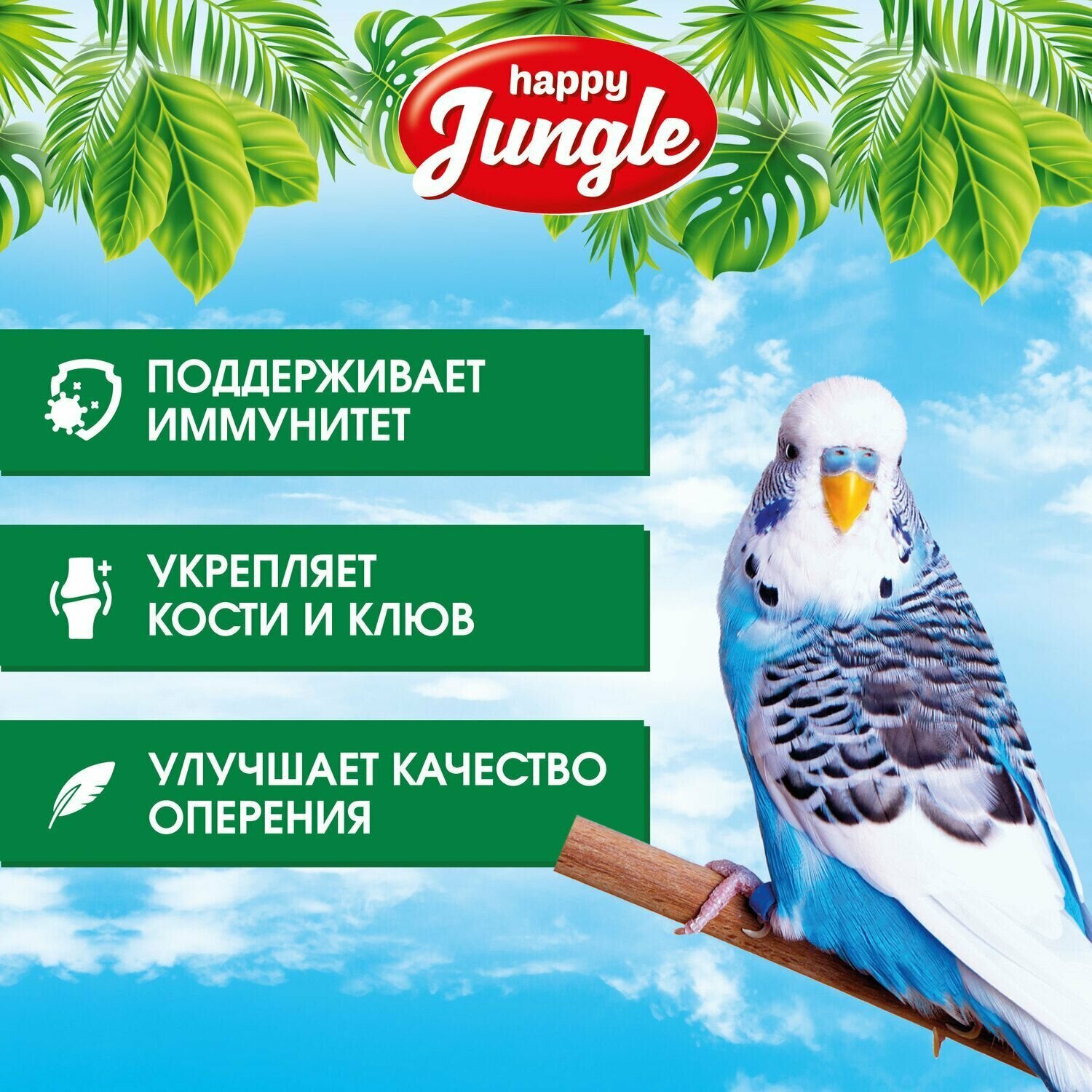 Купить Корм для волнистых попугаев сухой Happy Jungle 900 г