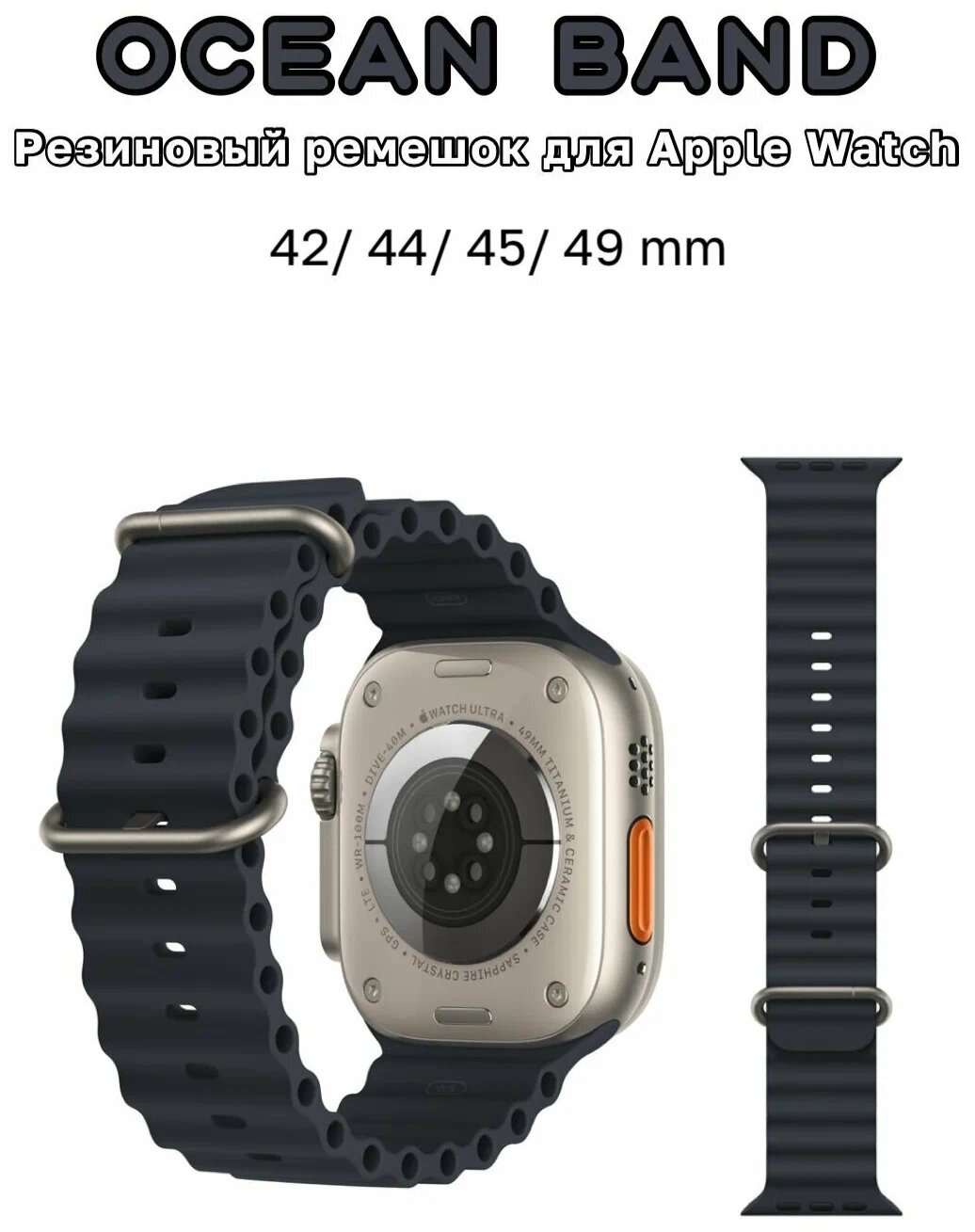 Ремешок Ocean Band для Apple Watch ULTRA 42-44-45-49mm, Series 1-8, SE, 42/44/45/49mm, темно-синий (midnight blue), рифленый