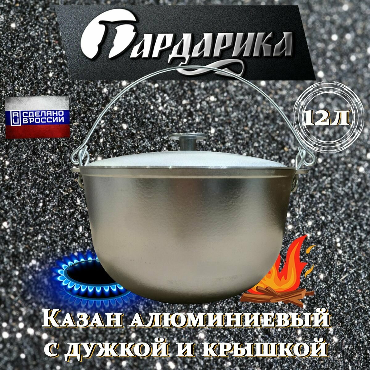 Казан Походный Алюминиевый Литой 10л d320 h173 с Крышкой и Дужкой Ровное Дно Гардарика 10-1