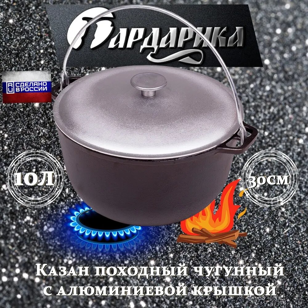 Казан чугунный Гардарика походный с алюминиевой крышкой 10 л d300