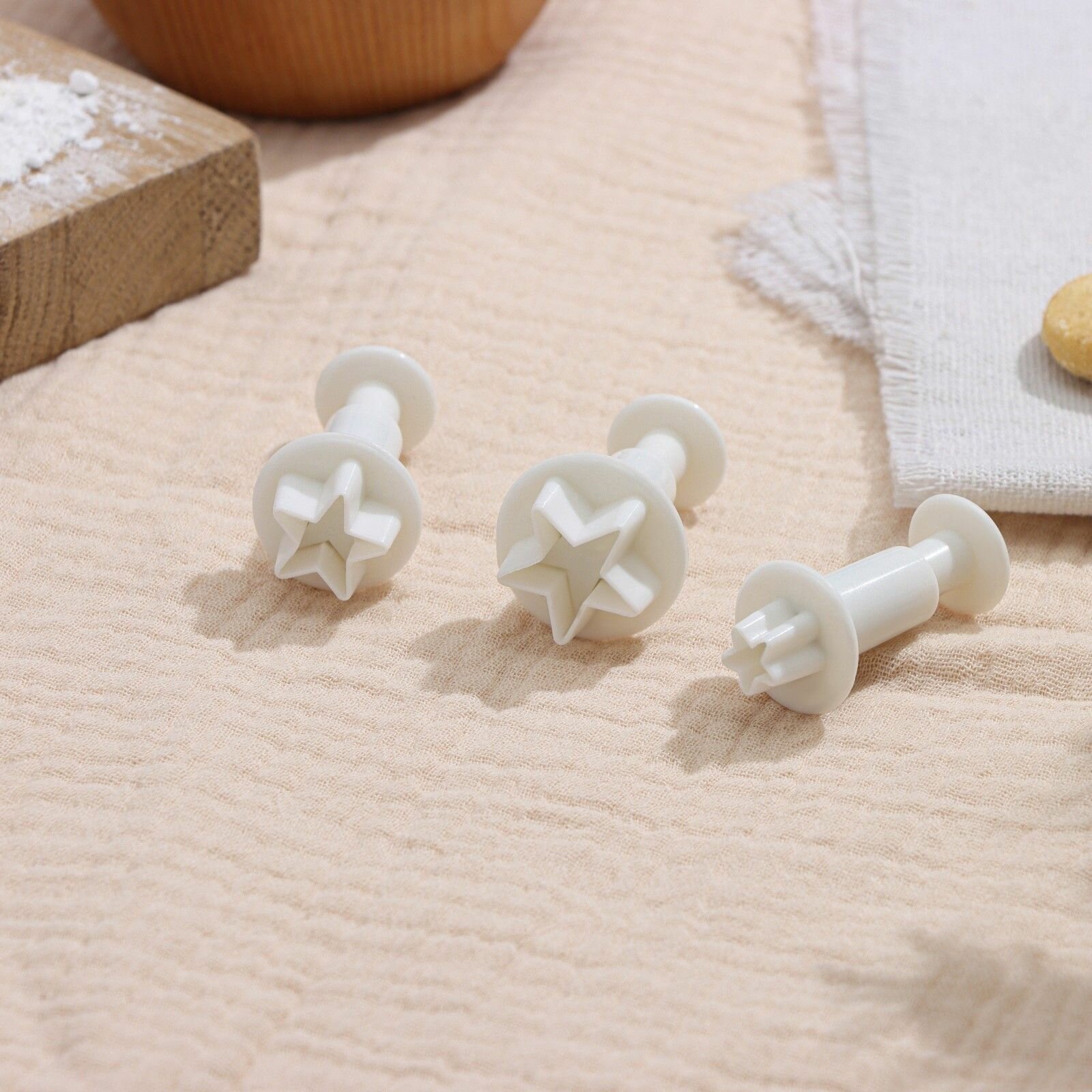 Плунжеры кондитерские Доляна «Звёздочка», набор 3 шт: d=2 см, d=2,2 см, d=2,5 см, пластик, белые