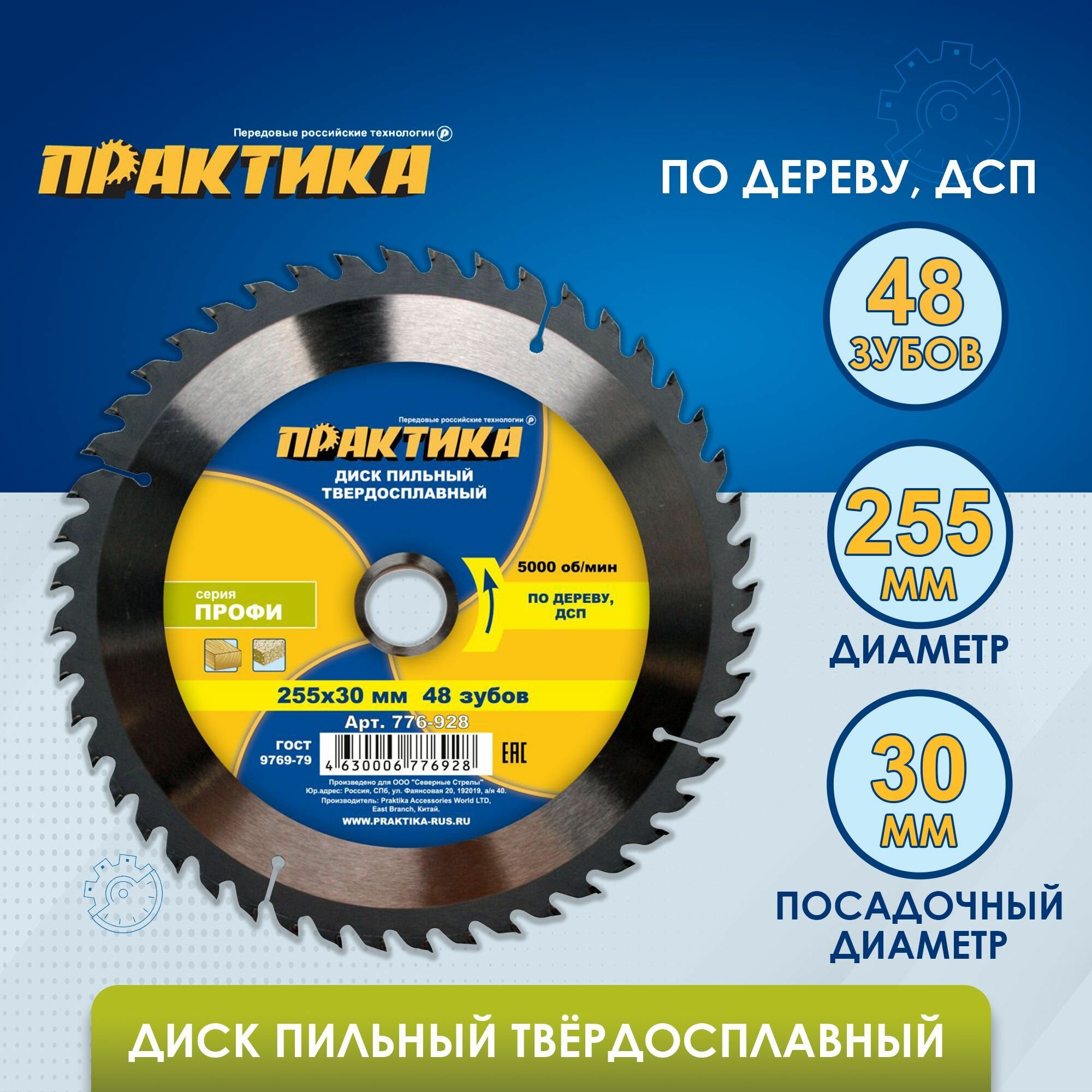 Диск пильный по дереву ПРАКТИКА, d255х30мм (776-928) интересное: