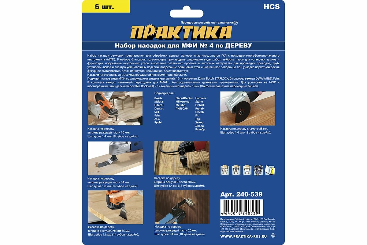 Насадки для МФИ / реноватора ПРАКТИКА набор 6 шт по дереву №4 в блистере (240-539) интересное:
