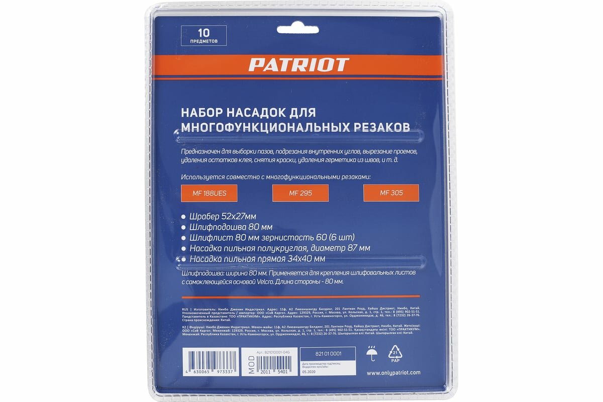 Набор насадок PATRIOT для многофункциональных резаков, 10 предм 821010001 интересное: