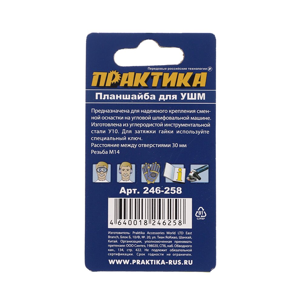 Планшайба для УШМ ПРАКТИКА резьба М14, посадка 22,2 мм, расстояние между отверстиями 30 м (246-258) интересное: