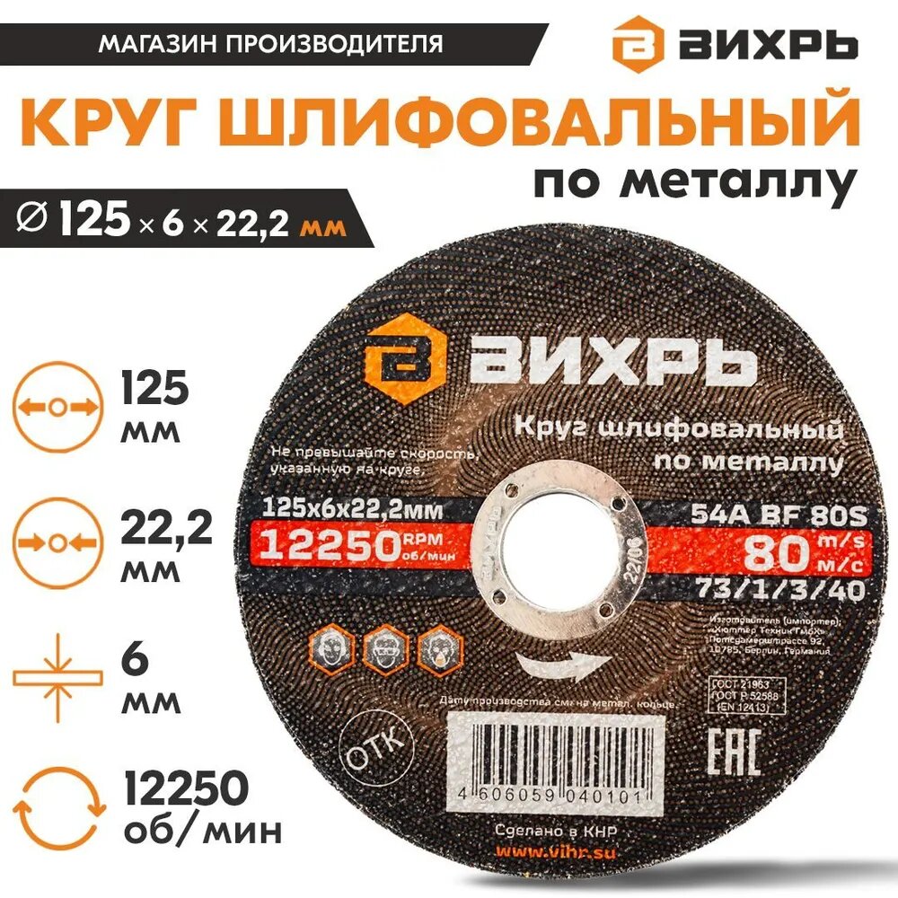 Круг шлифовальный по металлу 125х6х222 мм Вихрь интересное: