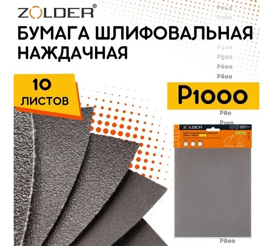 ZOLDER Бумага шлифовальная наждачная 230мм х 280мм Р1000, 10 листов / Z-103-2328-1000