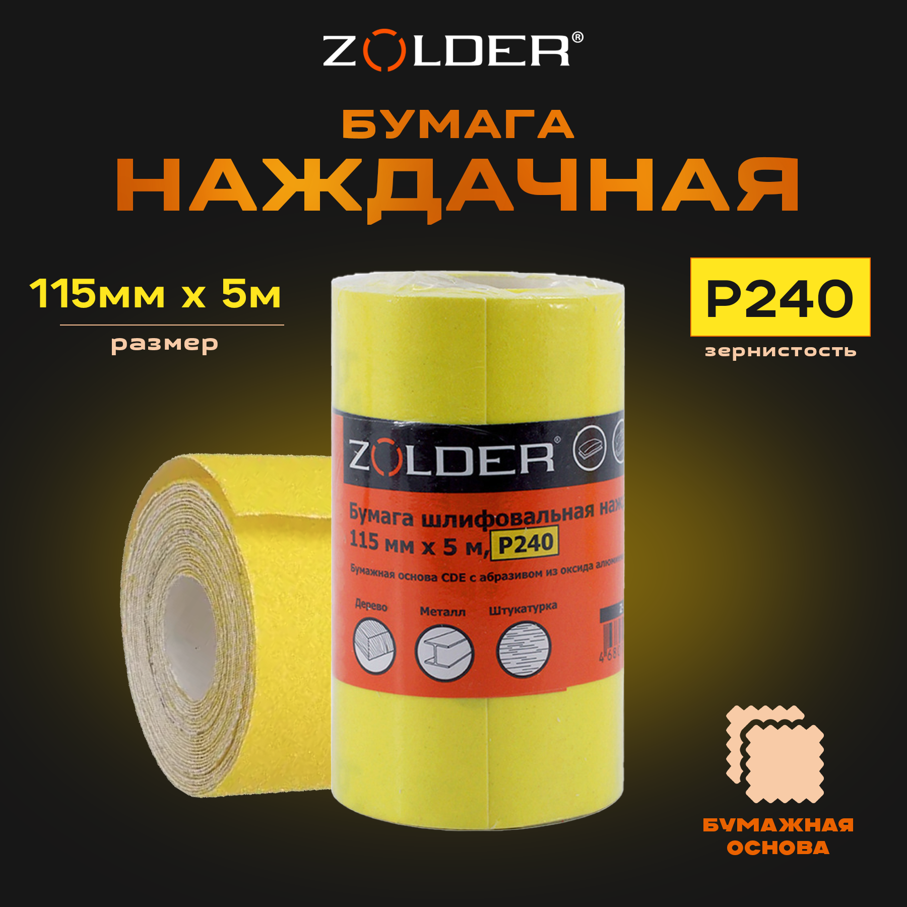 Купить Бумага шлифовальная, наждачная, 115 мм х 5 м, Р240, Zolder