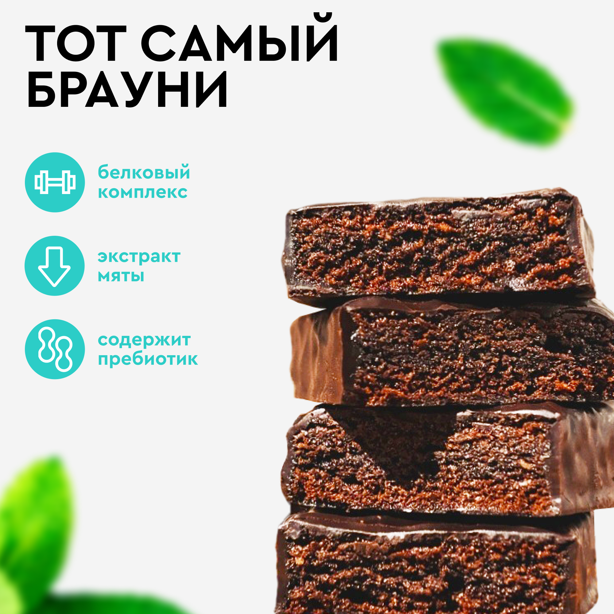 Протеиновые пирожные ProteinRex Брауни Мята - шоколад с коллагеном 12 шт х 50 г, без сахара, батончики Brownie, десерты, ПП сладости для похудения, 190 ккал