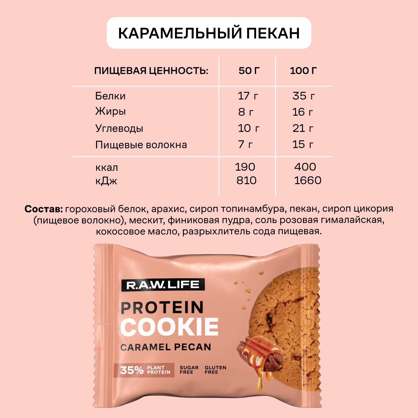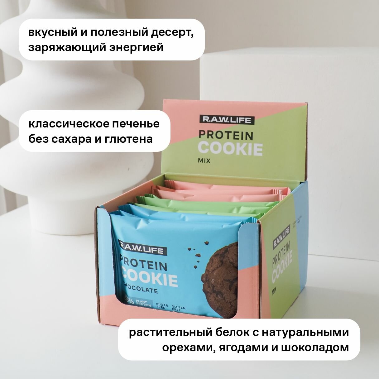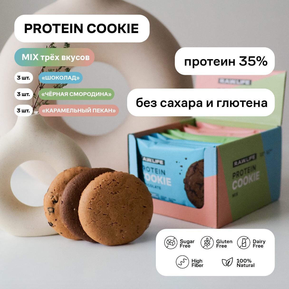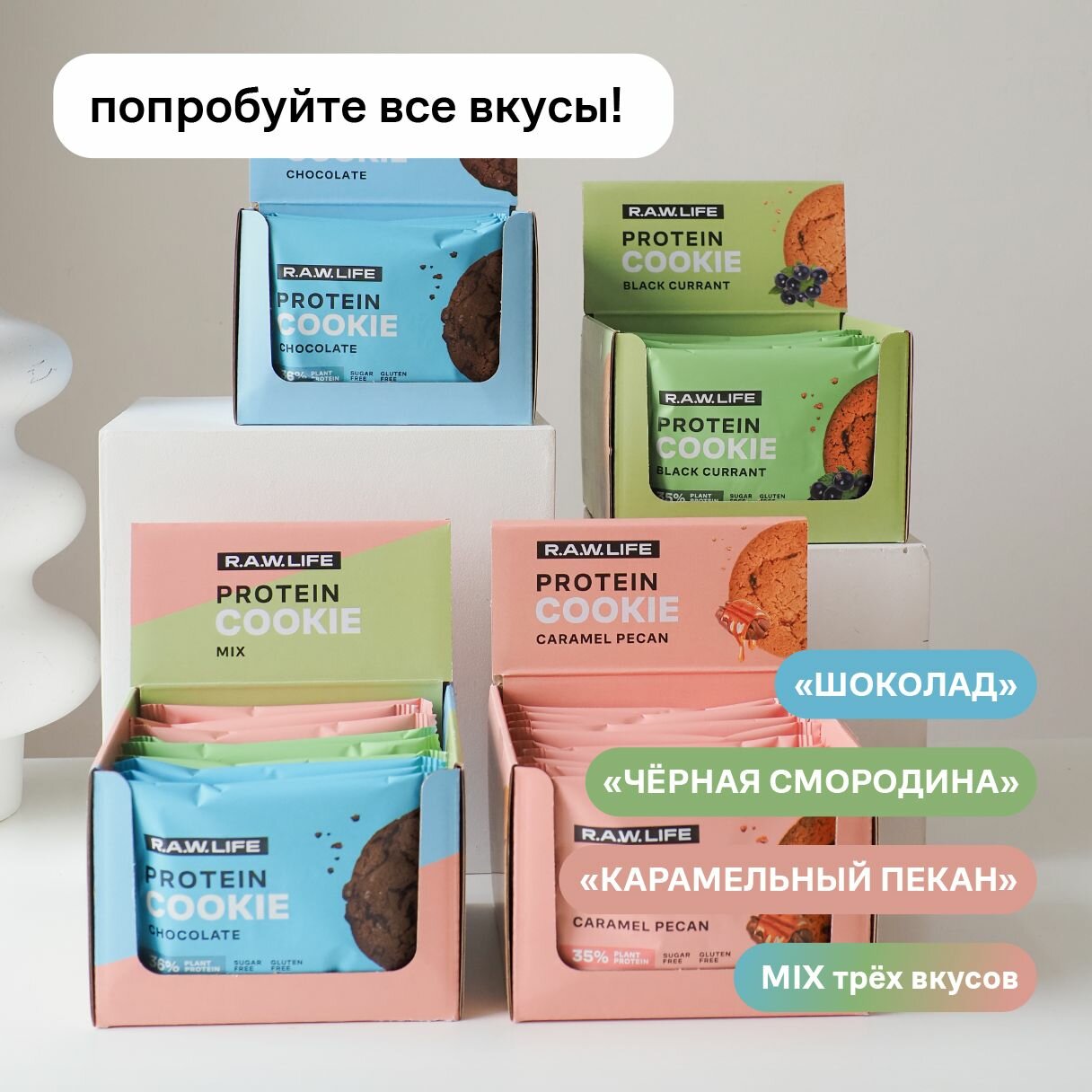 Протеиновое печенье без сахара R.A.W.LIFE Ассорти / Шоколад, Карамель-Пекан, Черная смородина / Микс бокс 9 шт - 50гр интересное:
