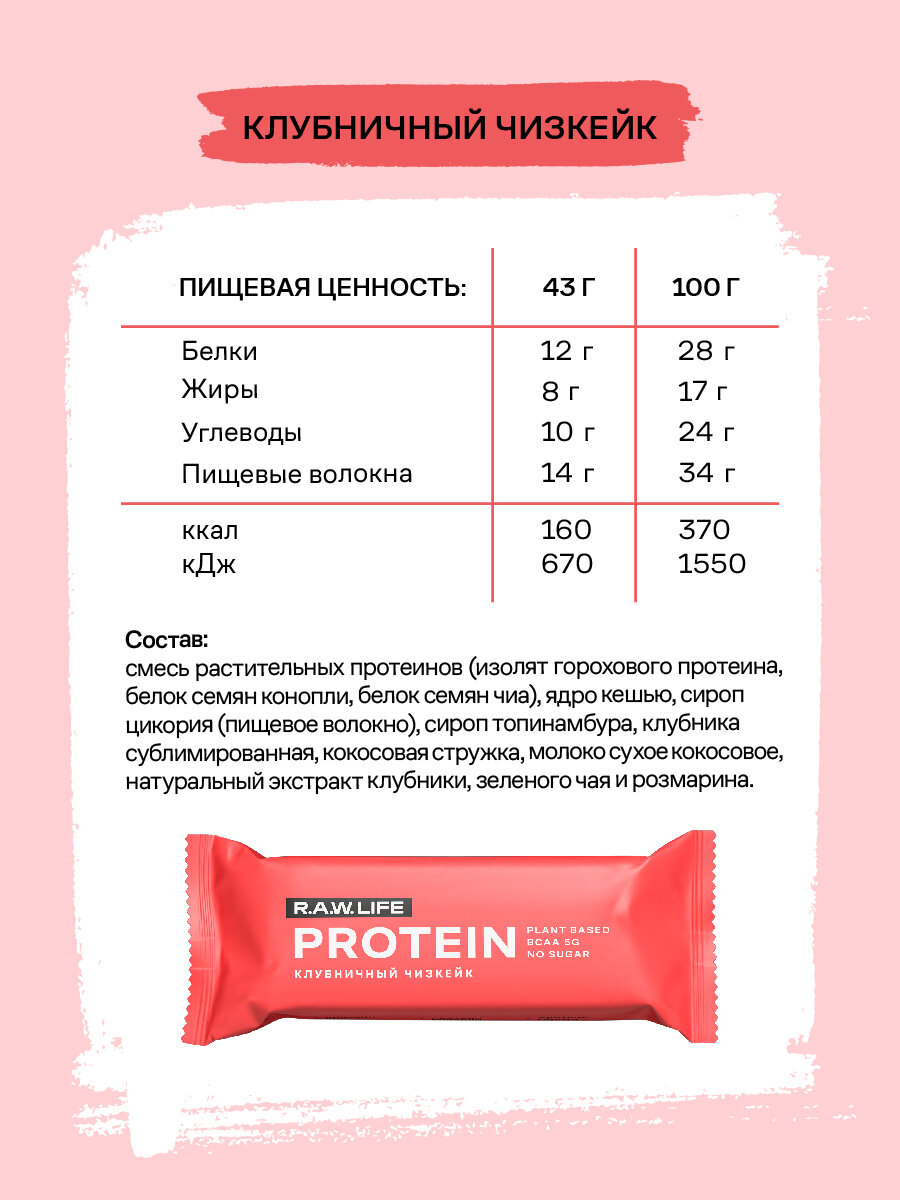 Протеиновые батончики без сахара 15шт х 43г /5 вкусов (микс)/Без Глютена/R.A.W.LIFE