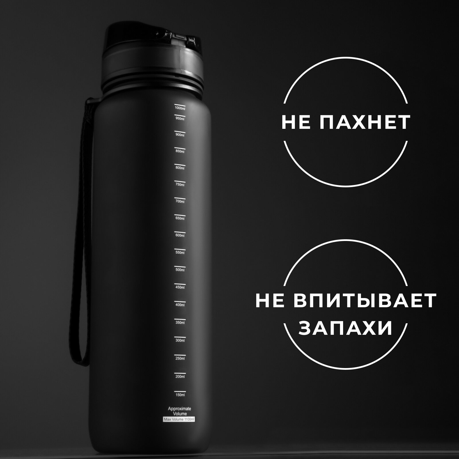 Бутылка спортивная Onlytop, объем 1000 мл, цвет черный интересное: