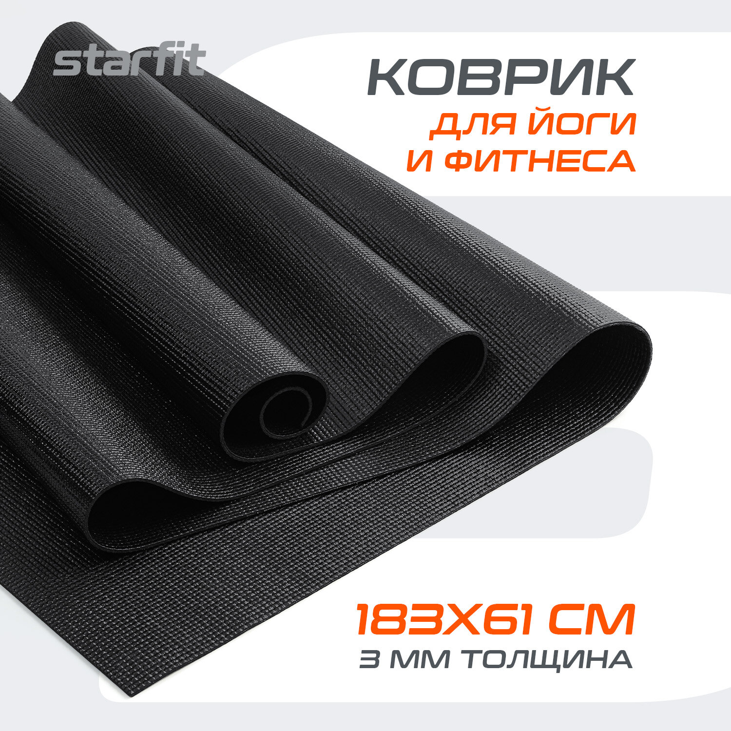 Купить Коврик для йоги и фитнеса STARFIT FM-101 PVC, 0,3 см, 183x61 см, черный