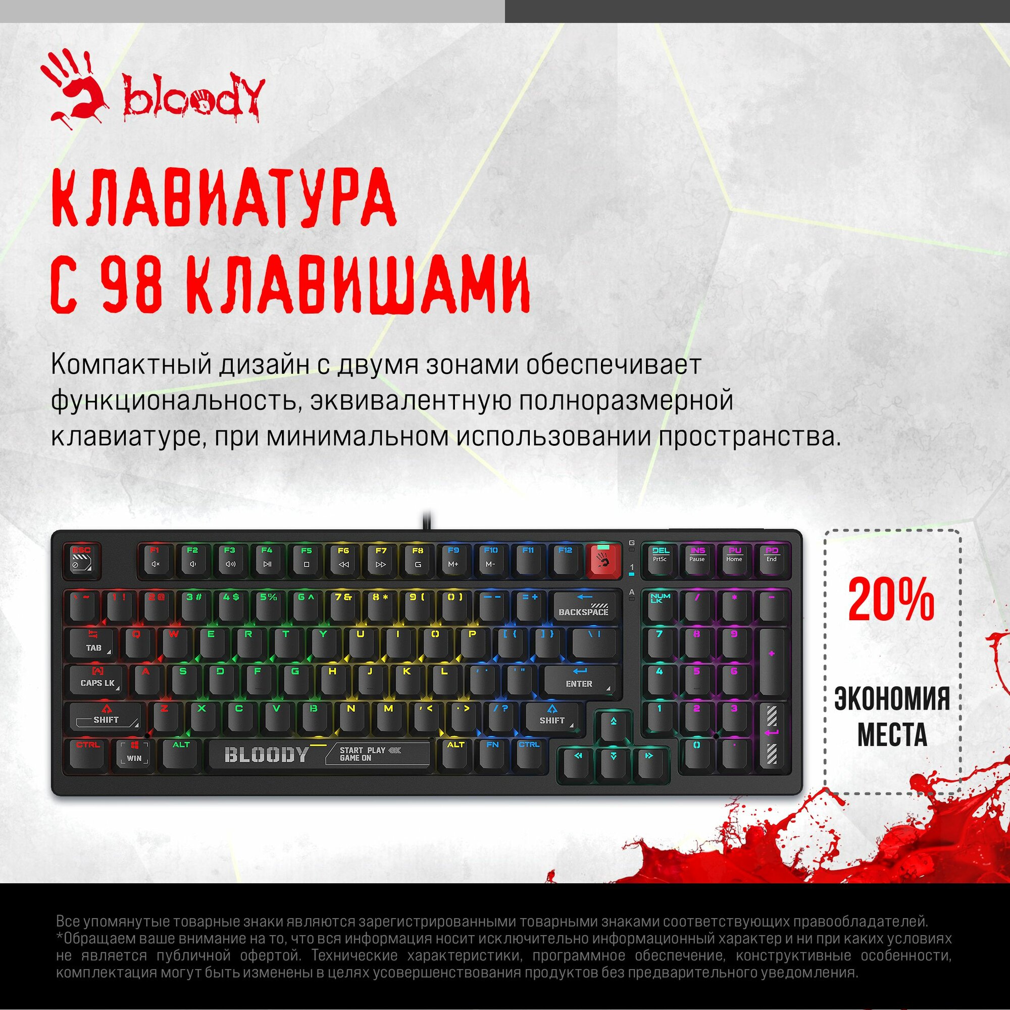 Клавиатура A4Tech Bloody S87 Energy, русские и английские буквы (s87 usb energy white)