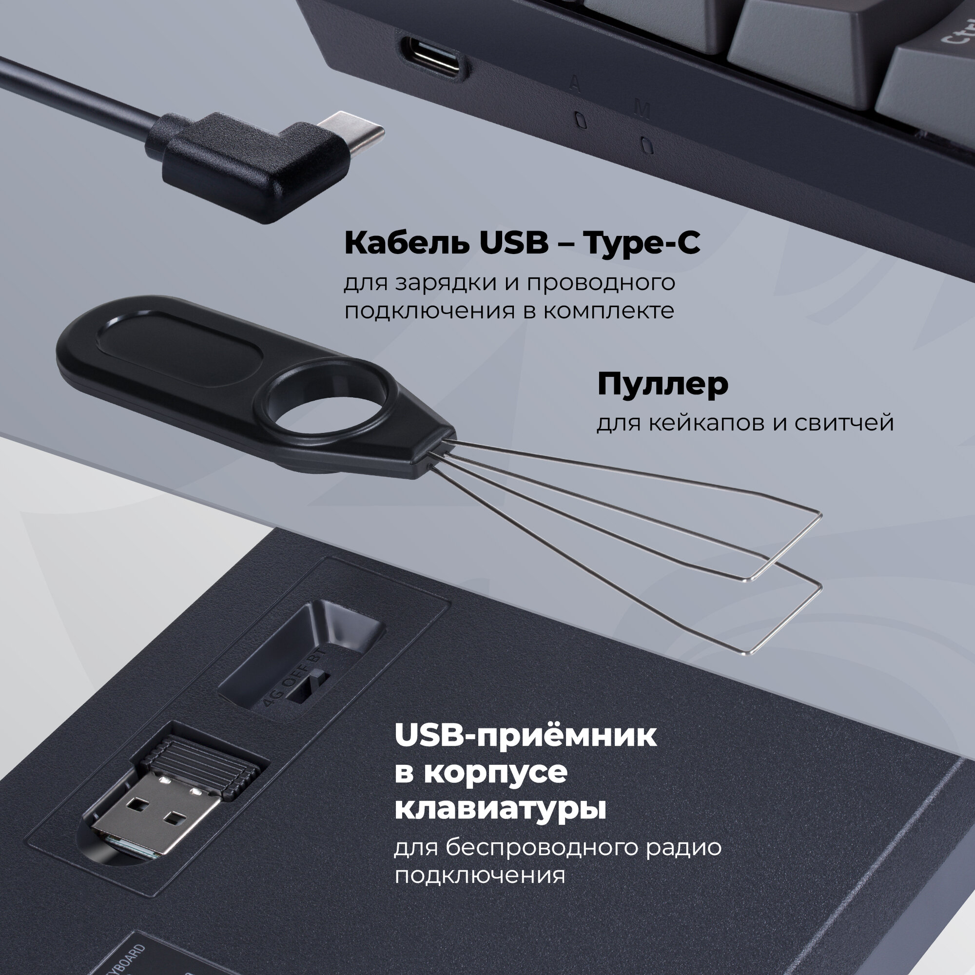 | Минусы: | пуллер царапает кейкапы |