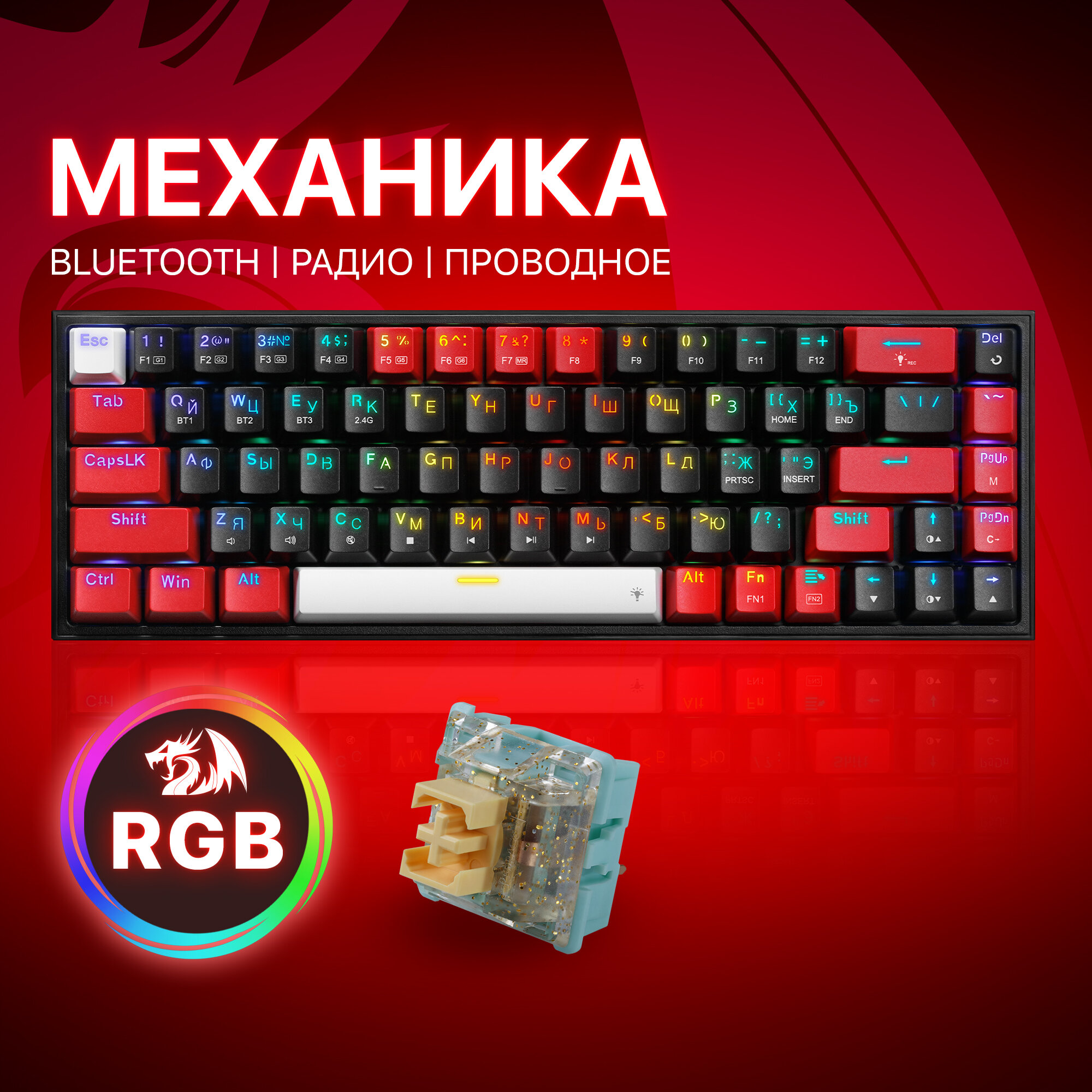 | Дополнительная информация | Redragon Castor Pro — ультракомпактный игровой инструмент с 68 клавишами и красными переключателями для максимальной точности и скорости. Вы можете выбрать один из трех режимов подключения — BT, 2.4G или проводное подключение, чтобы настроить устройство в соответствии с вашим стилем игры. |